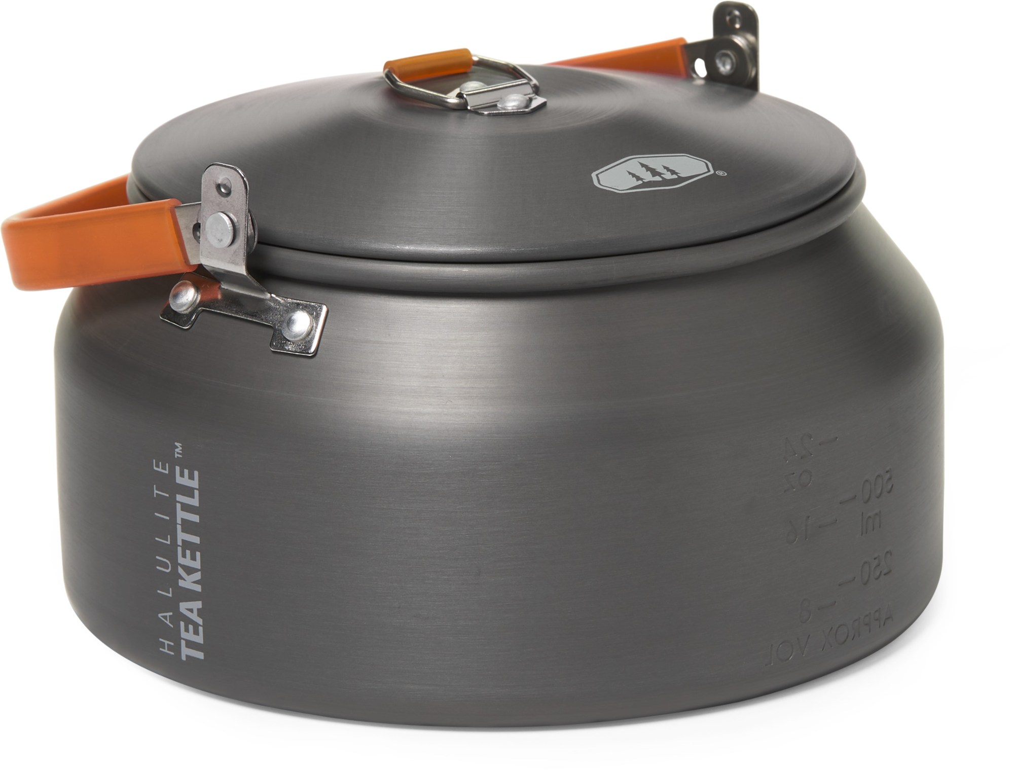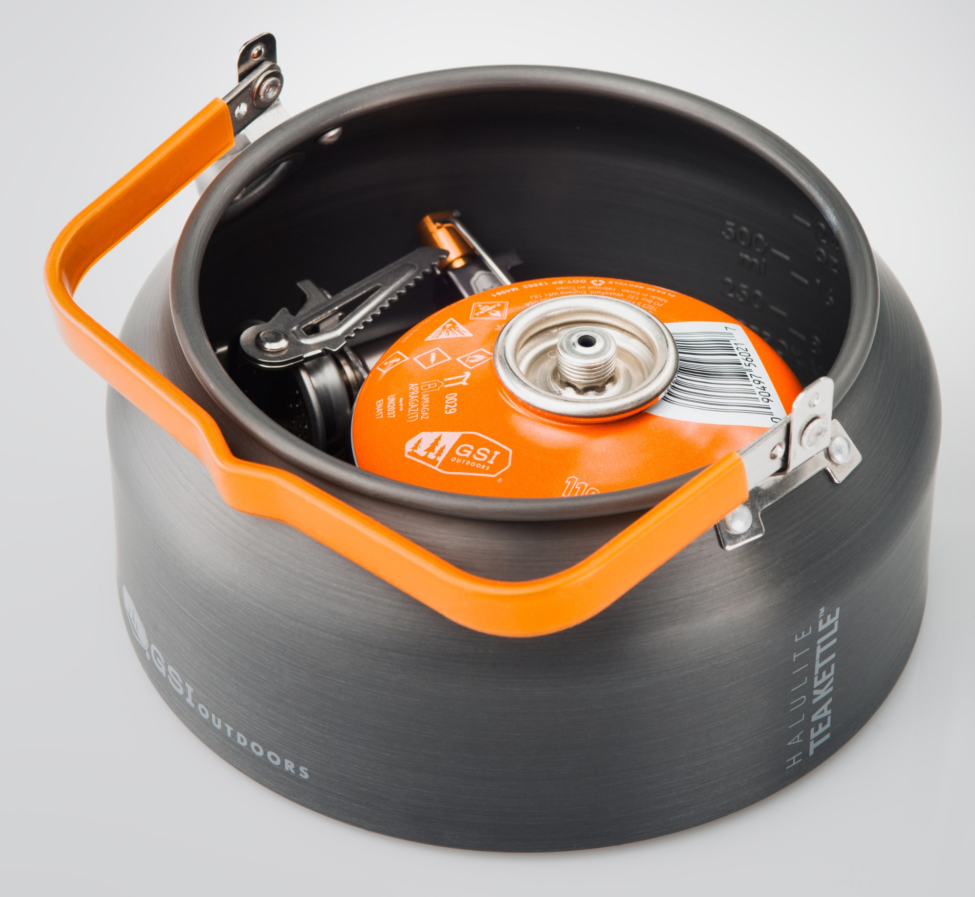 • The handy-size GSI Halulite 1-quart tea kettle provides the efficient heat conductivity of hard-anodized alloy to save you time and fuel when boiling water.