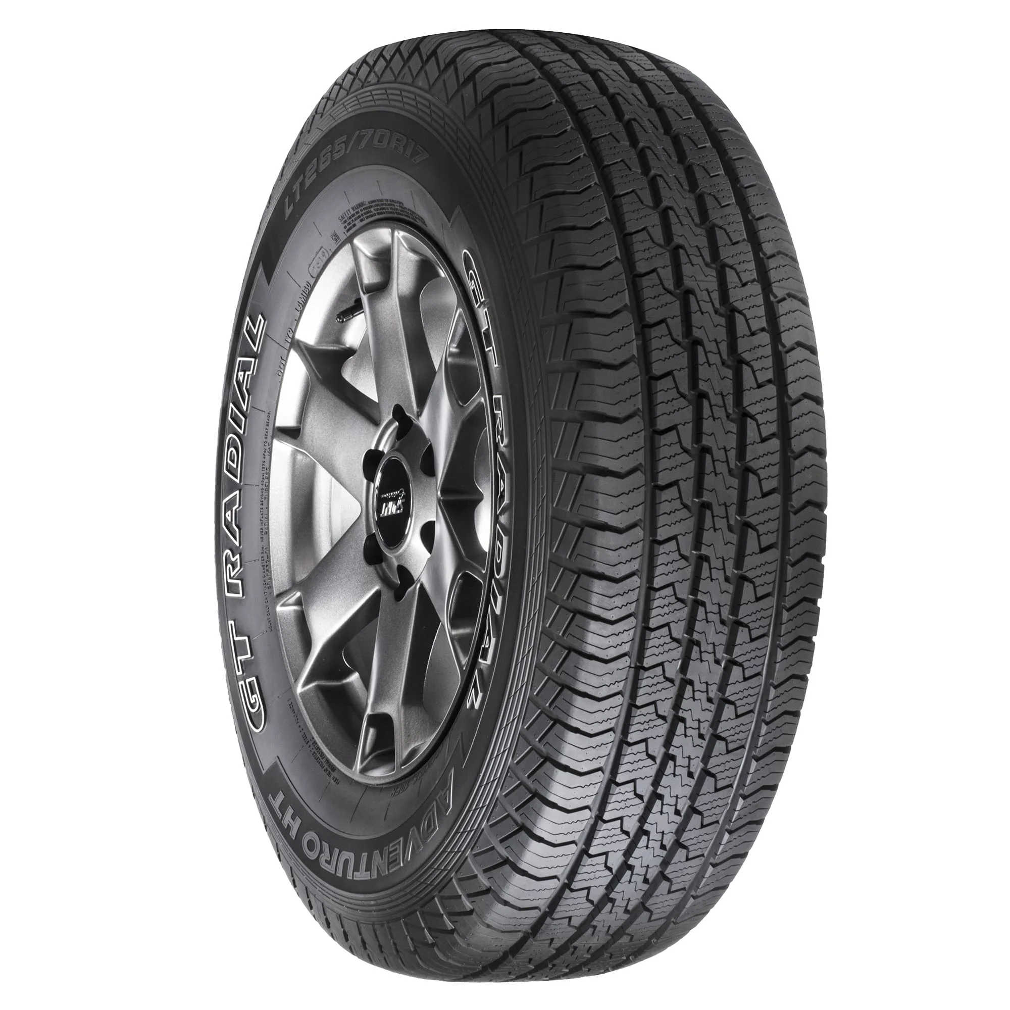 GT Radial Adventuro HT P275/55R20 111H OVERVIEW GT Radial’s Adventuro HT is an all-season, highway terrain tire that’s backed by a 60,000 mile limited manufacturer tread life warranty and 30 Day Test drive. Full-depth wave sipes create additional biting edges to boost traction on wet and snowy roads, and the Adventuro HT’s chamfered tread edges force water out of the tire to reduce the risk of hydroplaning on wet roads. A dual sidewall design allows drivers to choose the look of their ride, and the Adventuro HT is built with a continuous center rib that reduces braking distances and increases stability when driving at higher speeds.