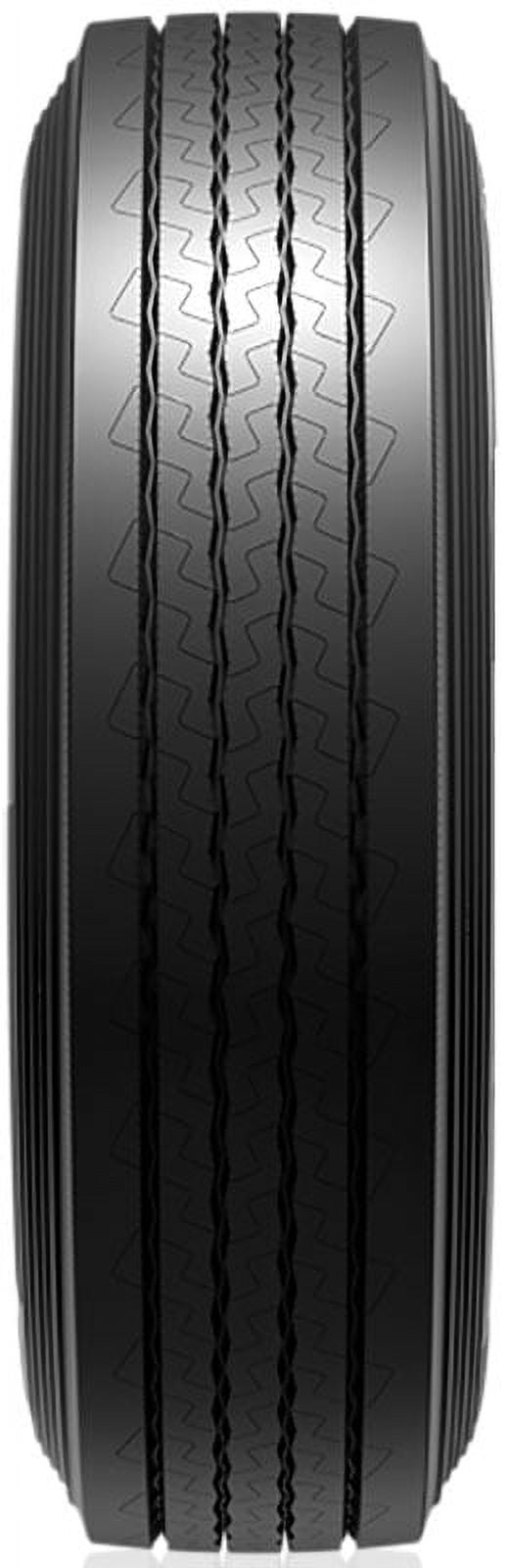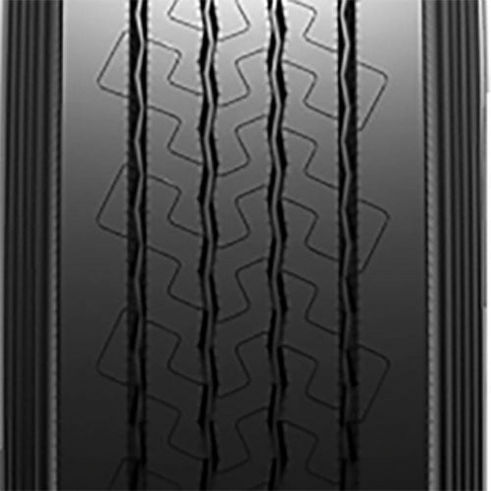 Designed for use on all positions, including the steer axle, of commercial trucks and buses in regional applications A four zigzag longitudinal groove design allows for excellent highway traction and driving stability An optimized tread compound provides high wear resistance and reduced rolling resistance A wider shoulder ratio design increases shoulder rigidity which provides lateral force resistance for improved handling Tread block edge with “S” section sipes evenly distribute road stress for uniform wear and maximize tread edges for enhanced grip and wet performance Size: 11R22.5 Load Range: H Product May Vary From Picture Wheel/Rim Not Included