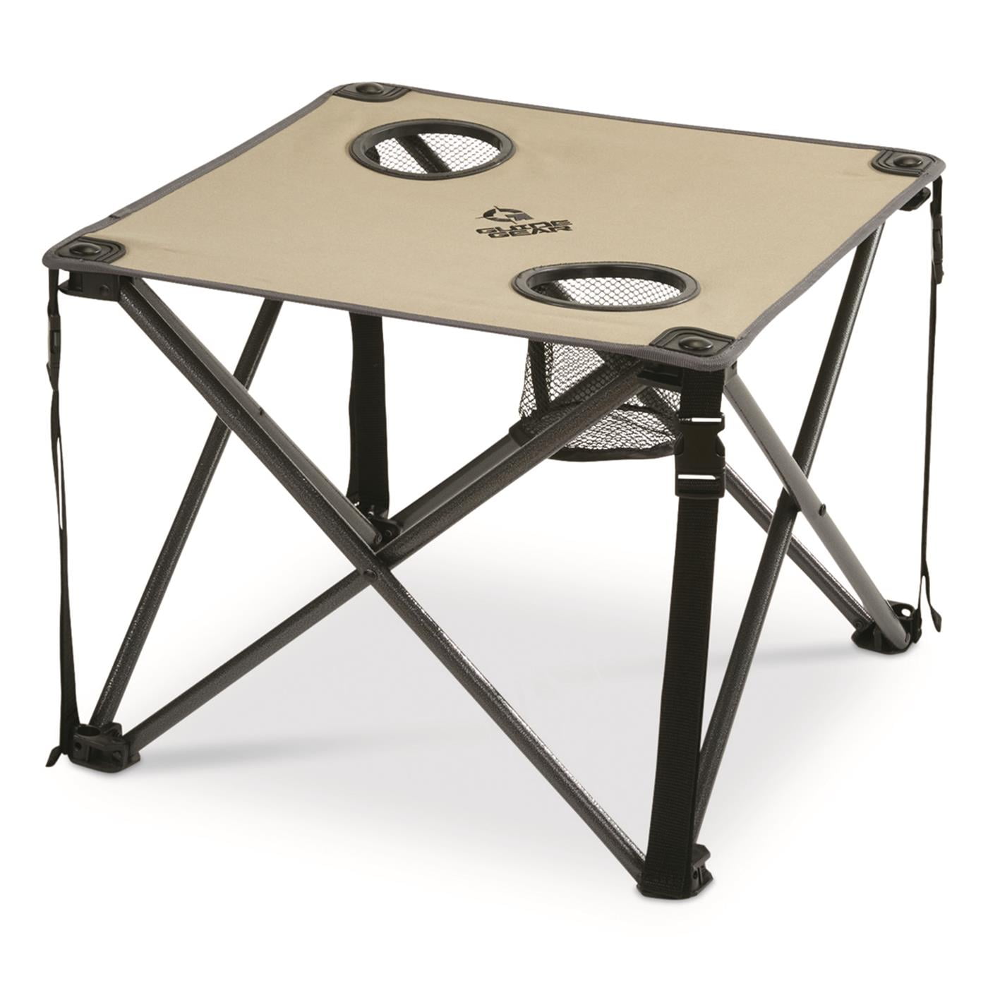 Includes 2 chairs and a folding table Compact, low-profile design easily fits in your truck or RV Durable oxford fabric for seasons of use Tough steel frame with durable powder coating Padded seats with mesh back for ventilation Built-in cup holders 250-lb. weight capacity per chair; 45-lb. weight capacity per table Packs inside 29″l. x 9″w. x 9″h. deluxe carry bag