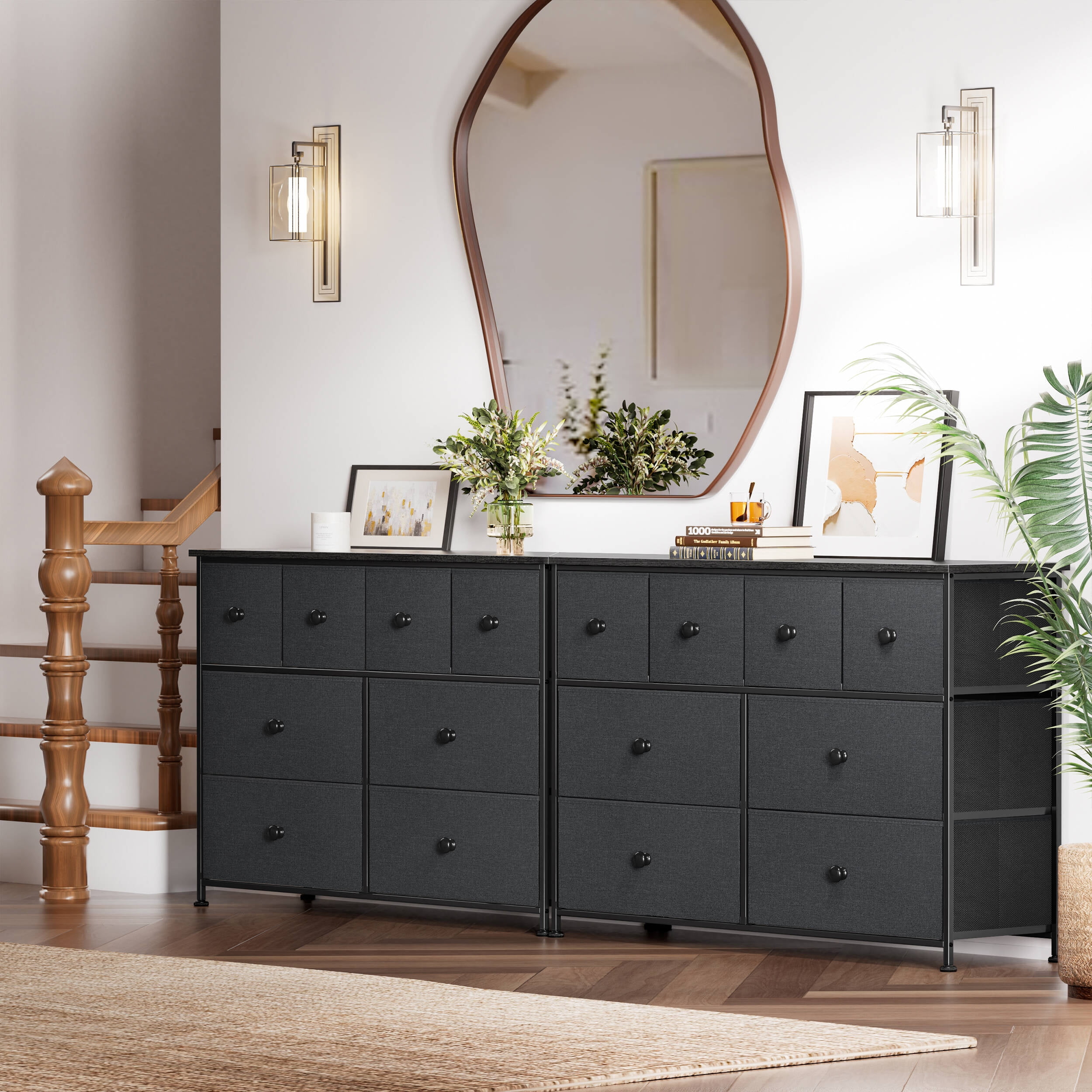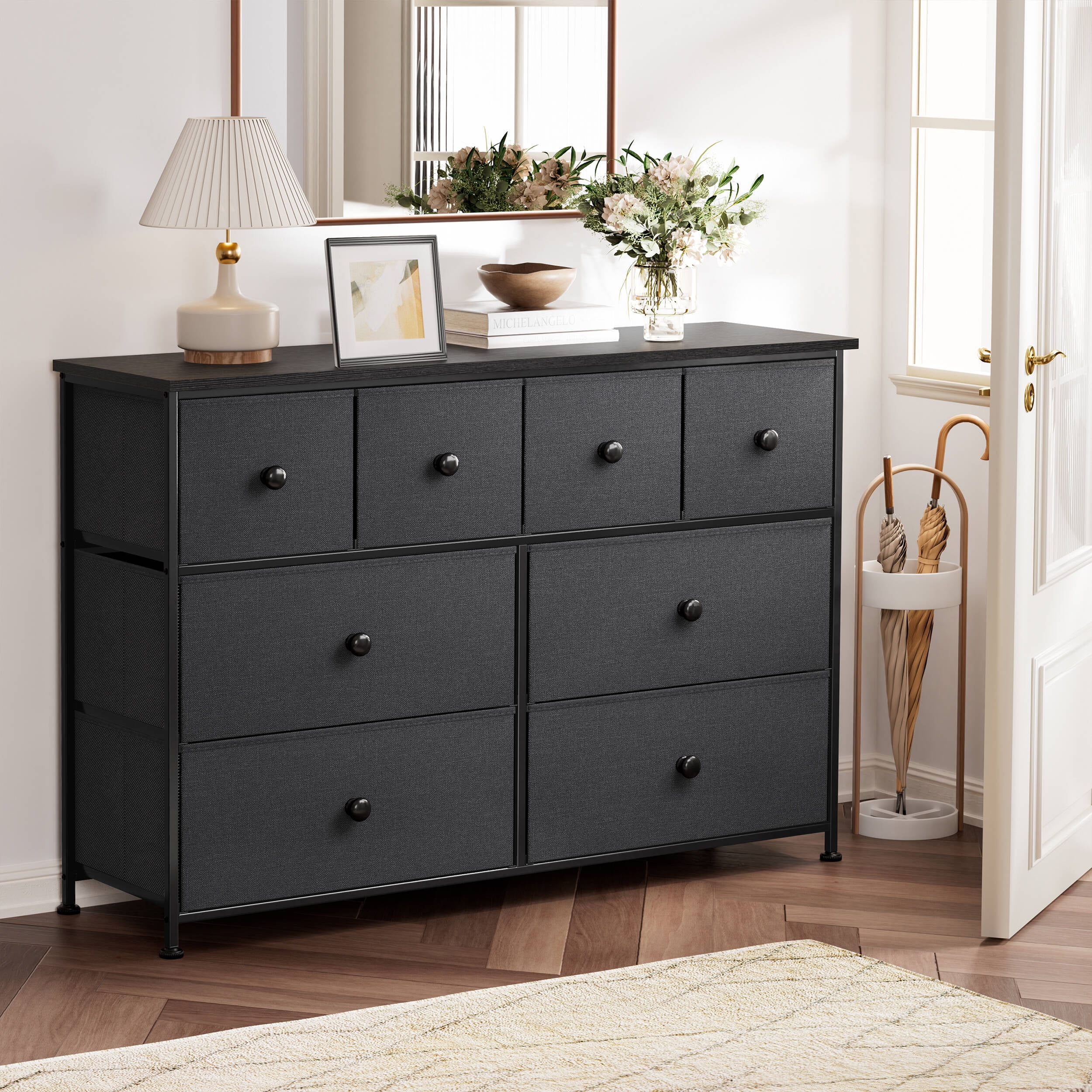 GUNAITO 8 Drawer Dresser for Bedroom Chest of Drawers Fabric Storage Bin,Black
