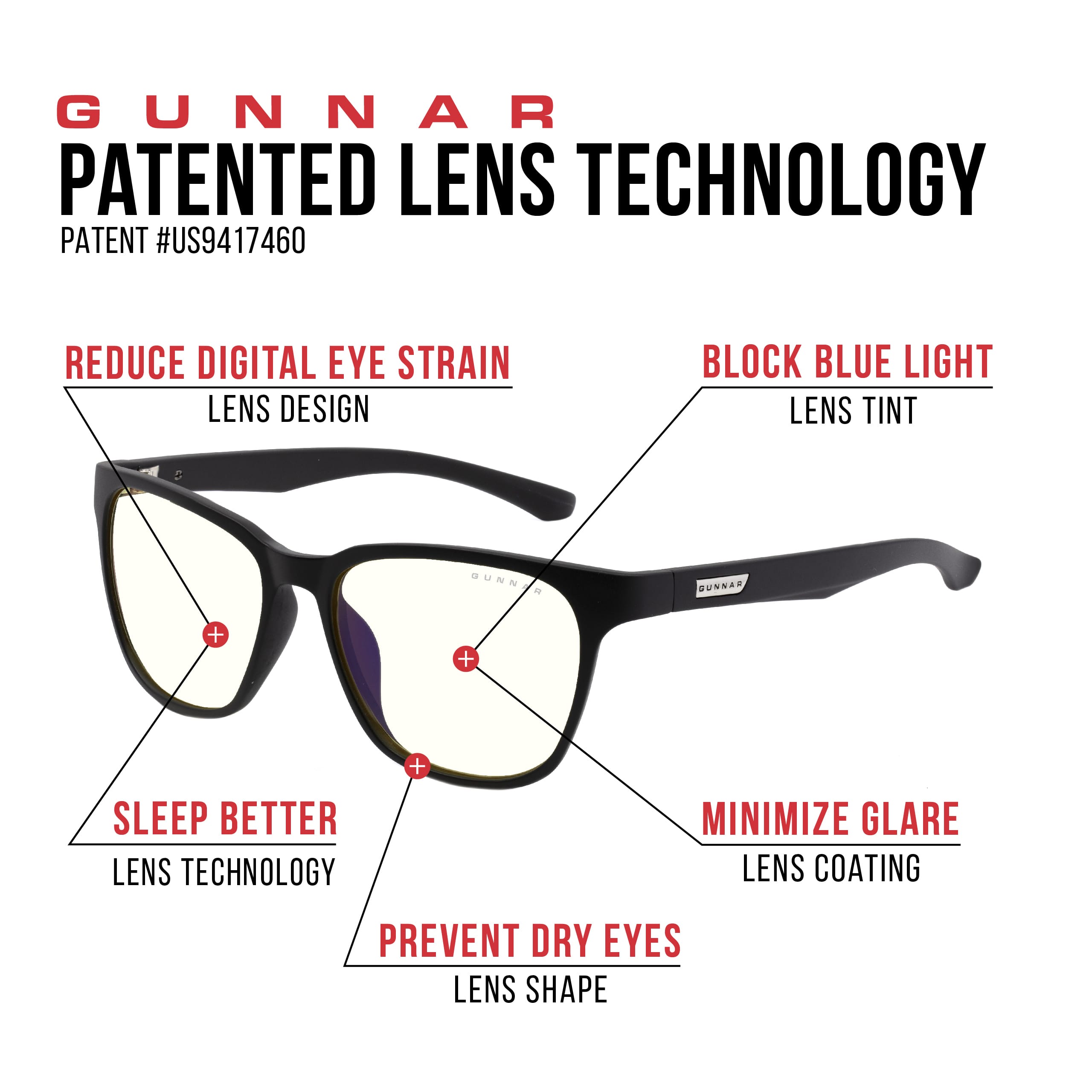 Wide format lenses create an unobstructed panoramic, high-resolution field of view; includes GUNNAR Focus lenses, our most popular option: a slight focusing power(+0.20) to relax eye muscles, good for anyone with 20/20 vision (including contact wearers or post-LASIK patients)