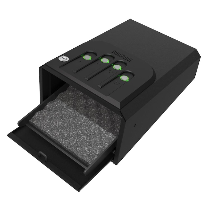 Taking quick access security to new heights, the new MiniVault provides access to a handgun 20% faster than its predecessor thanks to a groundbreaking auto slide-out drawer. Upon entry of the correct code, the safe door simultaneously opens while the foam-padded auto slide-out drawer delivers unobstructed access to a handgun. Aiding in low-light conditions, a red LED illuminates the interior of the GV1050-19 for added confidence when you need it most. The MiniVault features the industry-leading illuminated No-Eyes® keypad for fast access, even in the dark. Security features include heavy gauge steel construction, tamper proof concealed hinge and manual backup key with dimpled design for enhanced picked resistance which offers superior protection for your handguns and valuables.