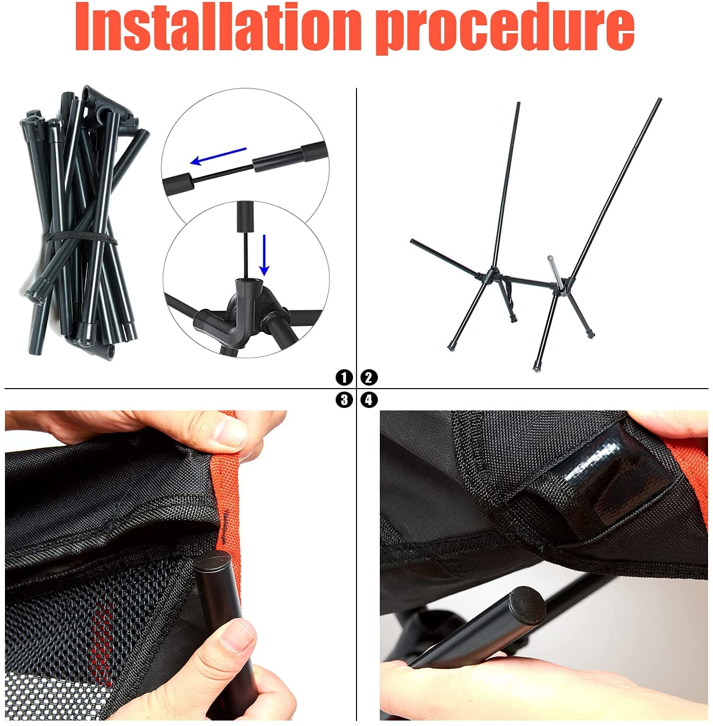 ???? [ Breathable fabric ] GVDV camping chairs selected wear-resistant and breathable environmentally friendly fabrics, which are odorless even in the hot summer. The support of the chair is made of lightweight and sturdy metal tubes, with a surface of breathable mesh fabric and 600D Oxford cloth, odorless PE coating on the back to strengthen durability. This means you can take it with you when traveling without any worries and offer you a moment of relaxation and rejuvenation when needed ???? [ Oversize&Comfortable ] Have you ever felt cramped and uncomfortable when using other normal chairs?Here our chair can solve your troubles. In order to provide our customers with a better camping experience and comfort, we have increased the height and width of the chair. which will bring you real relaxation and happiness!,The innovative triangular structure base is more stable and has a stronger resilience than others. The high back design allows you to lie comfortably in the chair and completely relax your neck. Whether you are lying down for a cool breeze in the evening or resting after your trip, it can always provide a better rest than the traditional small chairs ???? [ Compact and Portable ] Although a chair allows an adult to unfold, it is surprisingly compact when folded. You can even pack it in your backpack, it is not only lightweight but also portable when traveling ???? [ Easy to install and fold ] Take 30 seconds to unfold these metal tubes, then put metal tube into the fabric cover by stretching 2 straps. The installation steps are very simple, it only takes a few minutes to install or fold it. There are similar instructions in the package. You may take a few seconds to read and learn how to install it ???? [ Various Uses and Tips ] It is perfect for backpacking, fishing, hunting, backyard party, barbecue or light travel etc. This camping chair is also a popular holiday gift for family members or friends, especially for outdoor enthusiasts, they will definitely get it enjoy. Note: It is recommended to place the chair on a flat floor for better and safe use.