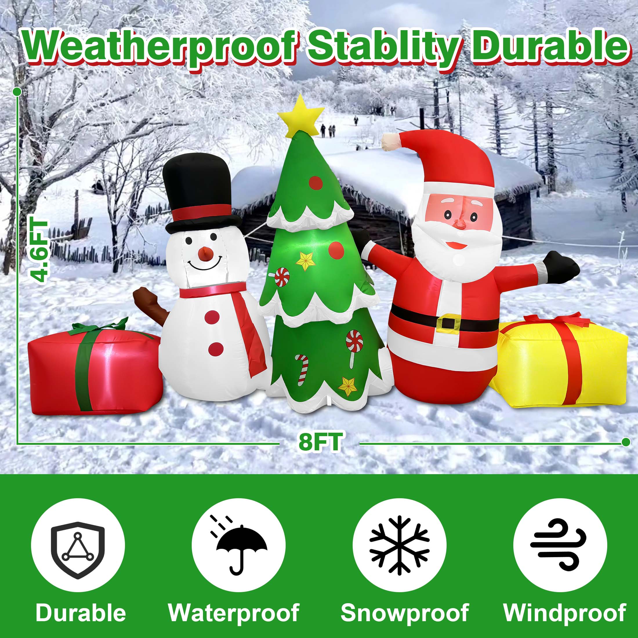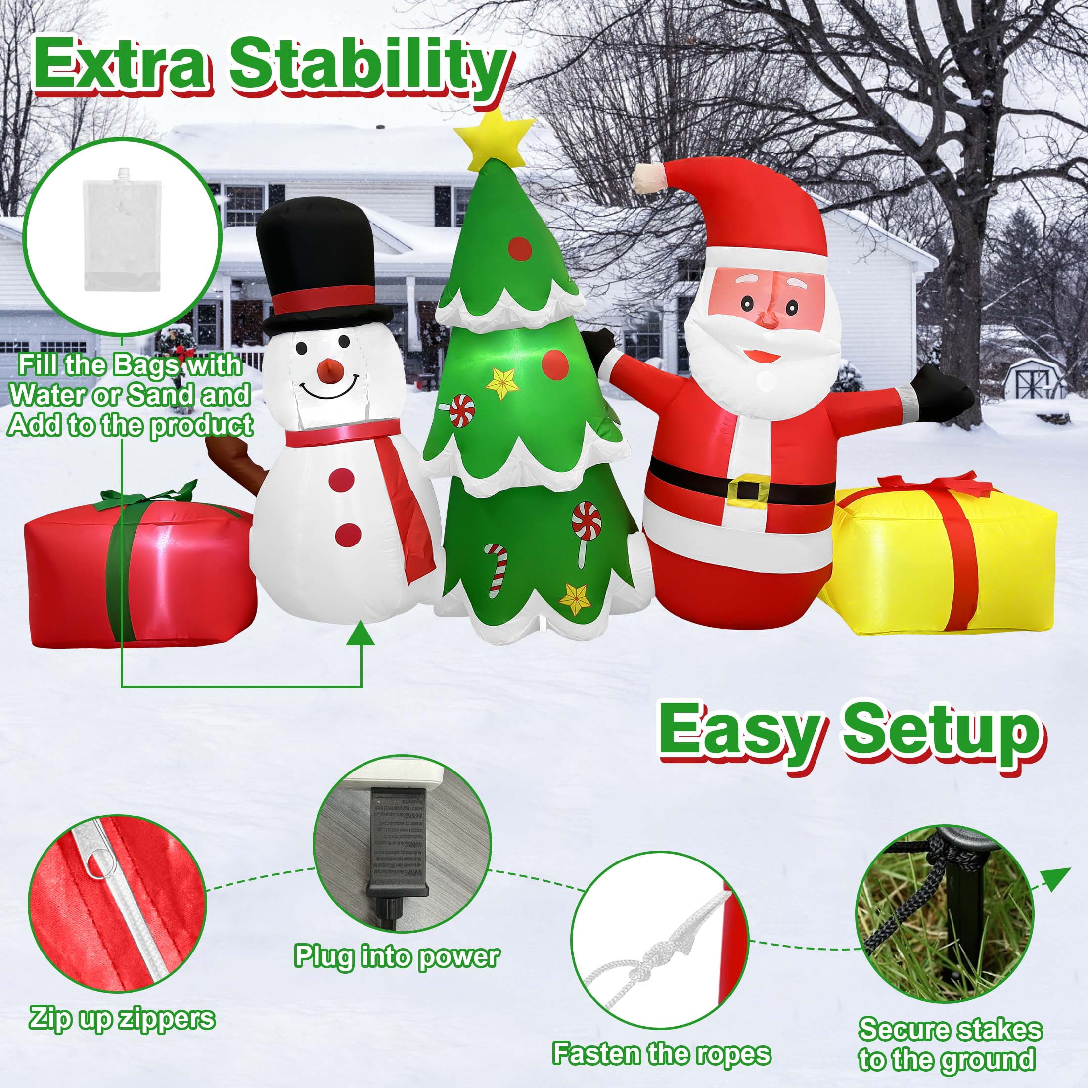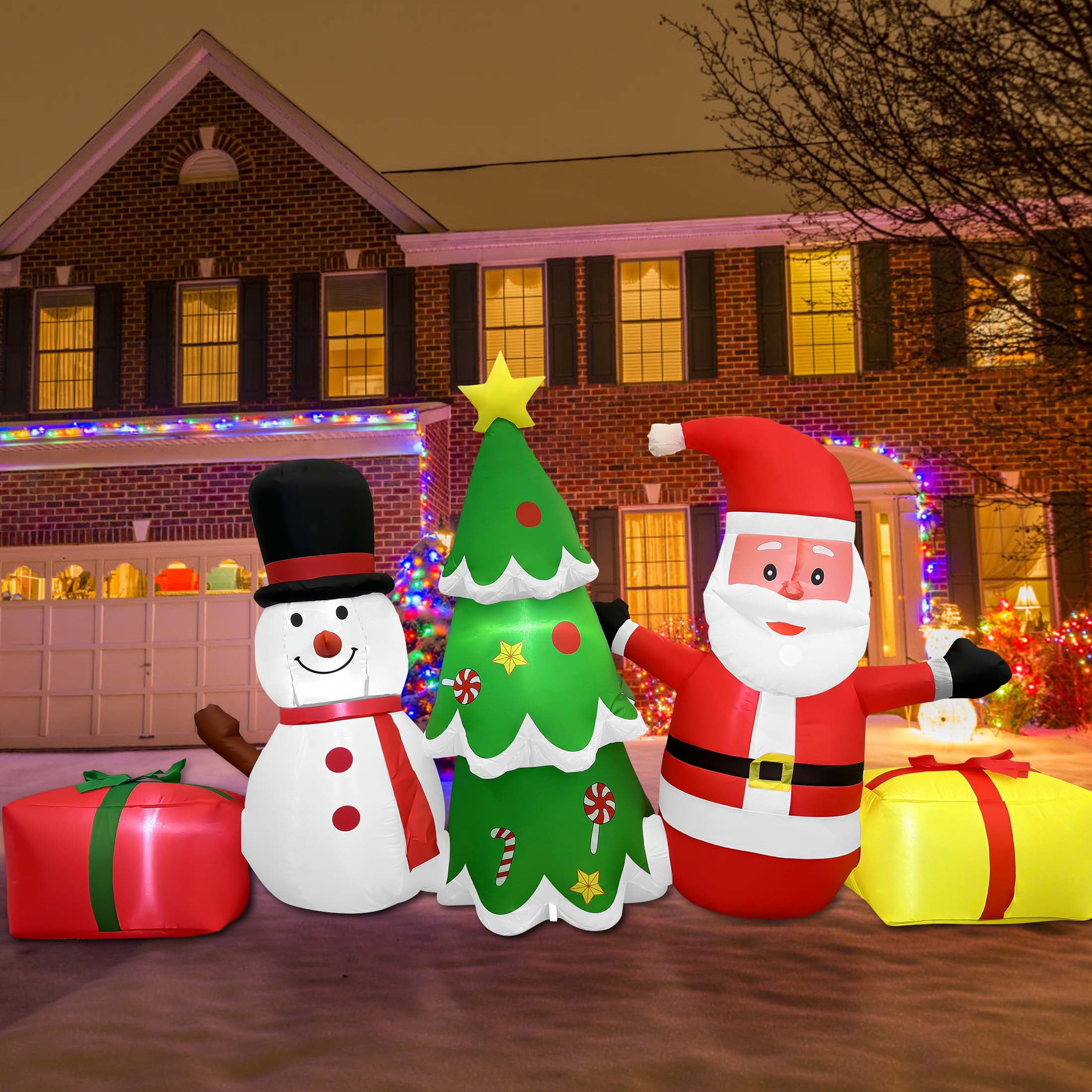 GVDV 8 FT Long Christmas Inflatables – Santa Claus, Snowman & Tree for Outdoor Lawn, Yard, Garden, Party Holiday Decorations