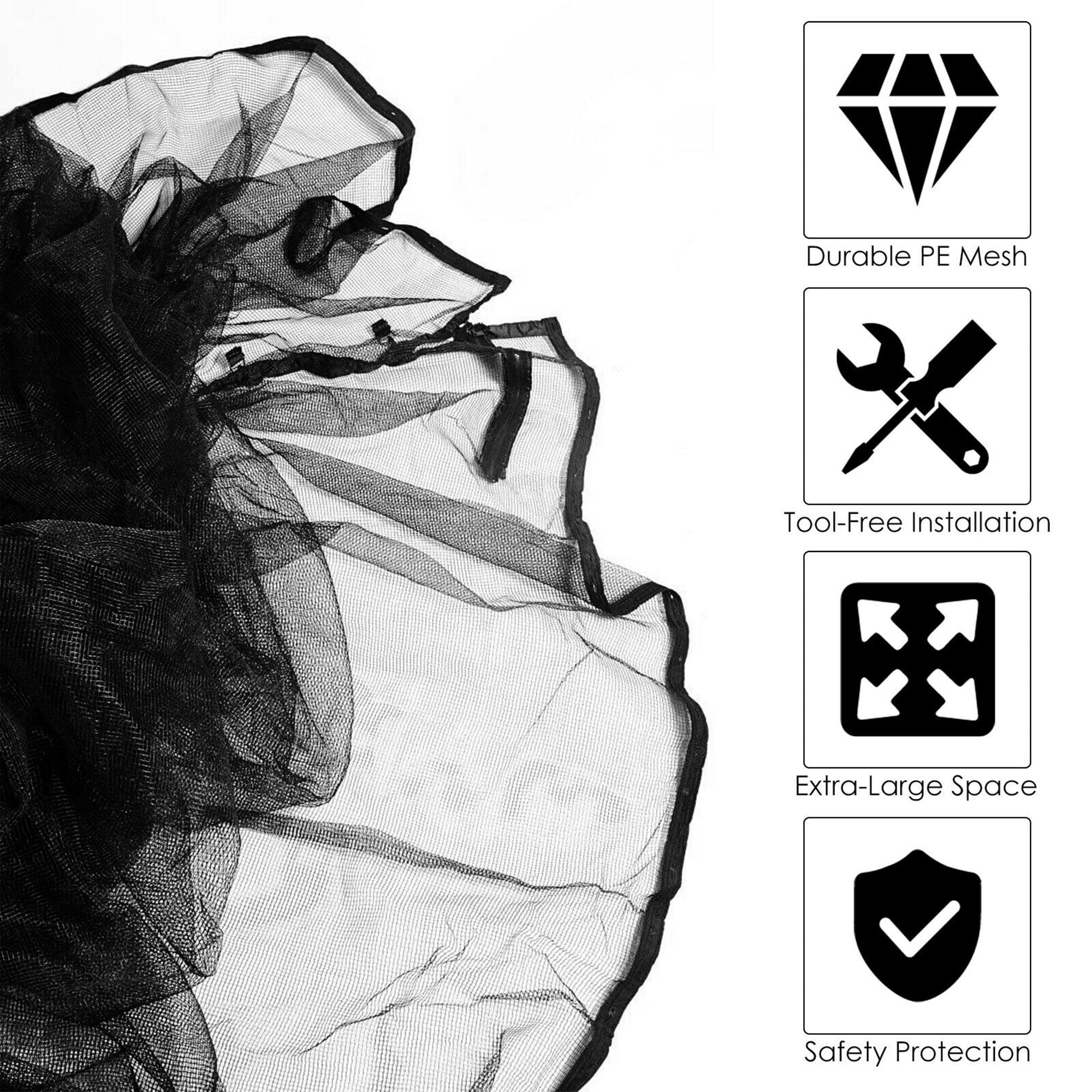 Easy to open and close the net with the built-in zipper and buckle Provide a spacious and safe jumping area for you and your family Effortless to assemble without any other tools Foldable and lightweight design for easy carrying and storage