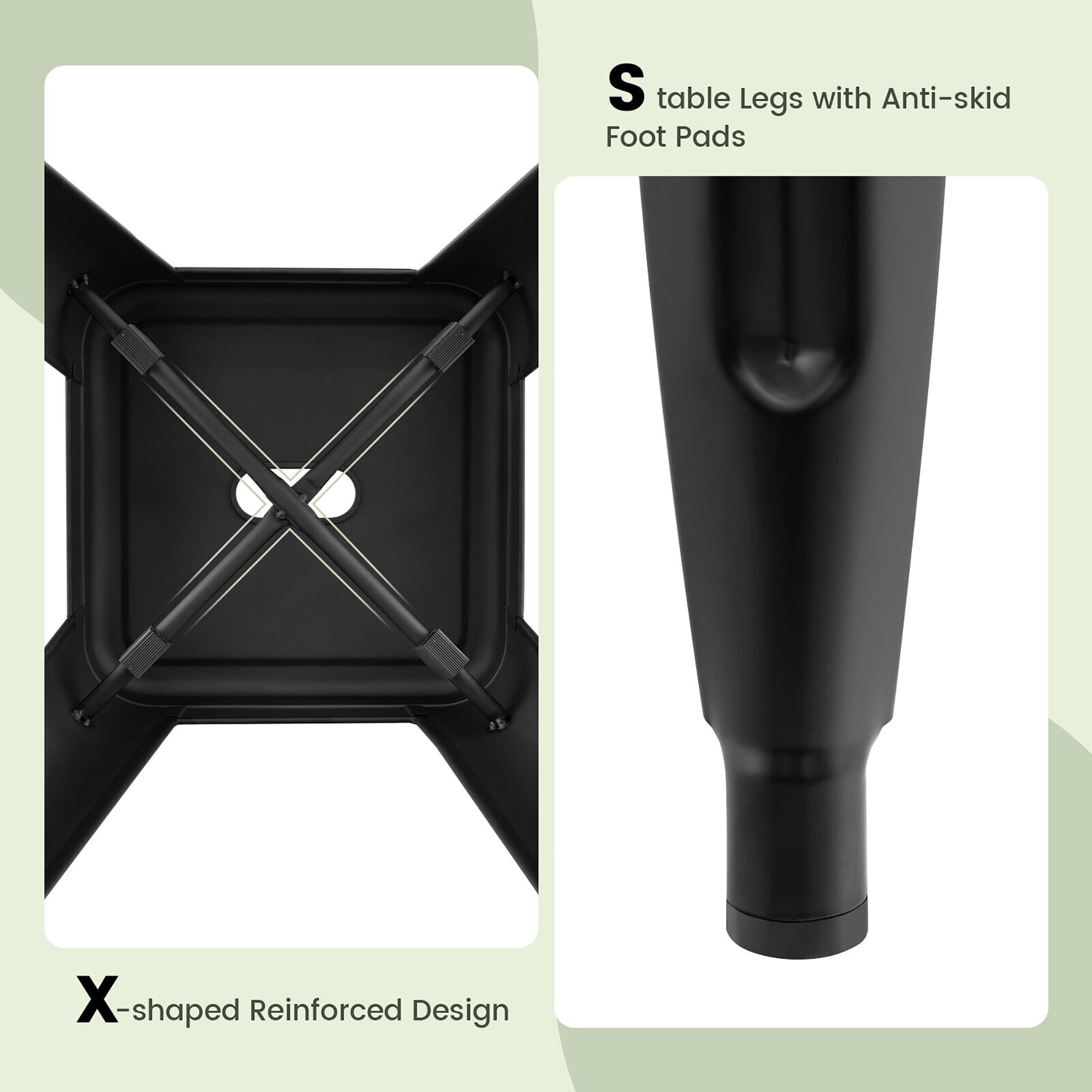 Stackable Design for Easy Storage: With backless design and open feet,all stools can be easily stacked to save space,enabling you to store with convenience. Handling hole of the seat helps you to easily carry each stool. In addition,the protective pads of the under seat X-shaped reinforced design protect the seat from scratching. Rustproof & Waterproof Barstools: Our metal bar stools with plastic sprayed surface ensure excellent water resistance,rust resistance and wear reistance. Meanwhile,the plastic sprayed surface is smooth and easy to clean. Besides,high-quality metal material also allows for outstanding durability. Stable Legs with Anti-skid Foot Pads: Each barstool is designed with 4 stable legs with anti-skid rubber foot pads,which ensures overall sturdiness and prevents the floor from being scratching. Plus,with 4 supportive legs,each bar stool is strong enough to hold up to 330 lbs. X-shaped Design & Comfortable Footrest: X-shaped reinforced design enhances its stability and guarantees better support. On the other hand,comfortable footrest offers a place for you and your family to relax your feet,improving the sitting experience. No Assembly & Wide Application: Our backless barstools require no assembly,saving your time and energy. Size of each stool is 16” x 16” x 24”(L x W x H). You can use them quickly after opening the package in the kitchen,dining room or home bar. They are also suitable for cafe or restaurant. Designed with backless design and open feet Protective pads of X-shaped design protect your seat surface when you stack stools up Stackable design to save space Handling hole for easy carrying X-shaped reinforced design for higher durability Square seat with high load capacity Extra footrest for more comfort No installation requirement for labor saving Waterproof surface for easy cleaning Great for the kitchen,dining room or home bar