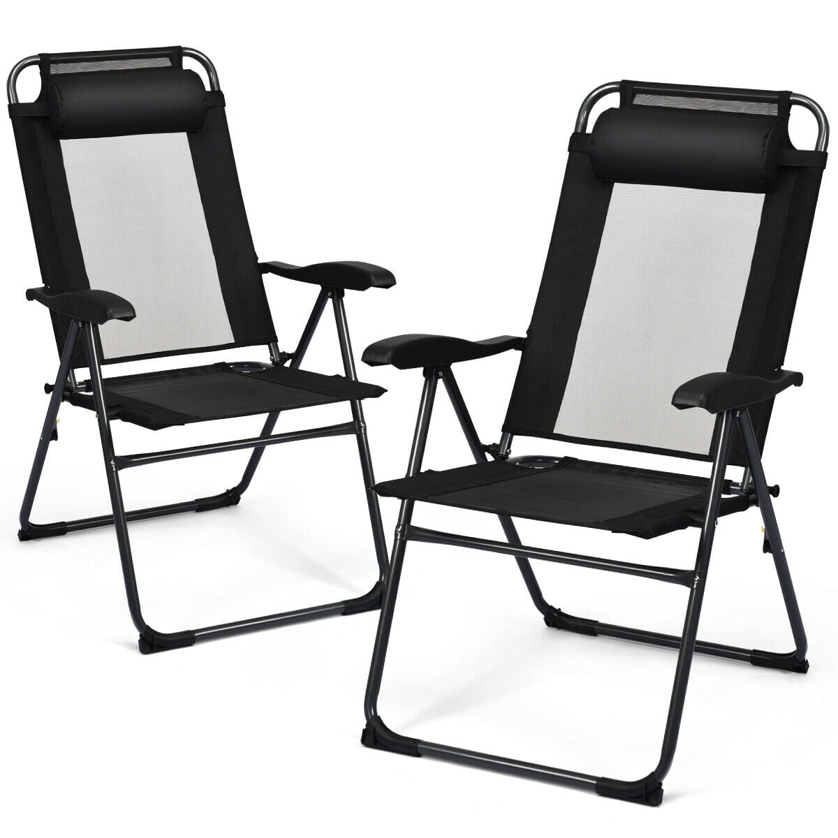 Gymax 2PC Folding Chairs Adjustable Reclining Chairs with Headrest Patio Garden Black