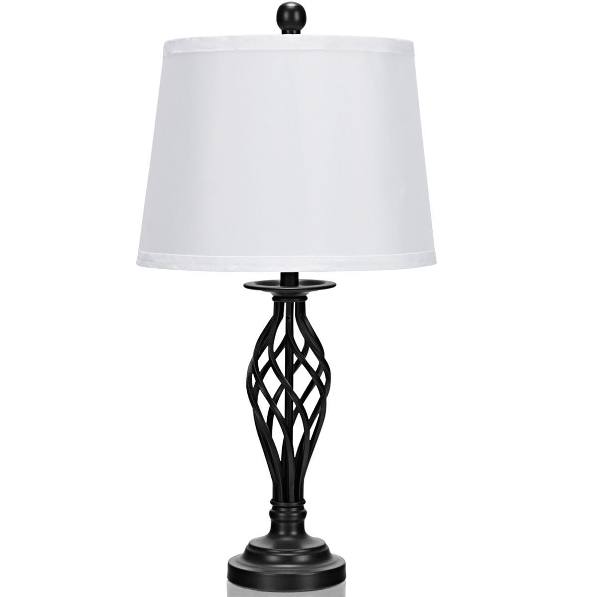 Description: Our 3-piece lamp set includes two matching table lamps and one floor lamp. Constructed by metal construction and white fabric shade. Each lamp can use one maximum 60 watt standard-medium base bulb (not included). Ideal for traditional or transitional style decor. It will performance nicely in various of scenes, no matter in bedroom, living room, vanity table, or other modern/rustic style scenes, it all fits well. This 3-piece lamp set will be a perfect choice for your home, no more waiting! Features: Use all three lamps in one room, or divide them up for use in several rooms in your home Perform nicely in various of scenes, no matter in bedroom, living room, vanity table, or other modern/rustic style scenes All take one maximum 60 watt standard base bulb (not included) All of the hardware for assembly and instructions are included in the package Features: Specification: 3-piece set includes 2 table lamps and 1 floor lamp Constructed by metal construction and white fabric shade Material: Steel and Fabric Net weight: 16.5lbs Overall dimension of the floor lamp: 15”W x 62.5”H Overall dimension of the table lamp: 12”W x 23.5”H Package includes: 1 x floor lamp 2 x table lamps 1 x Instruction