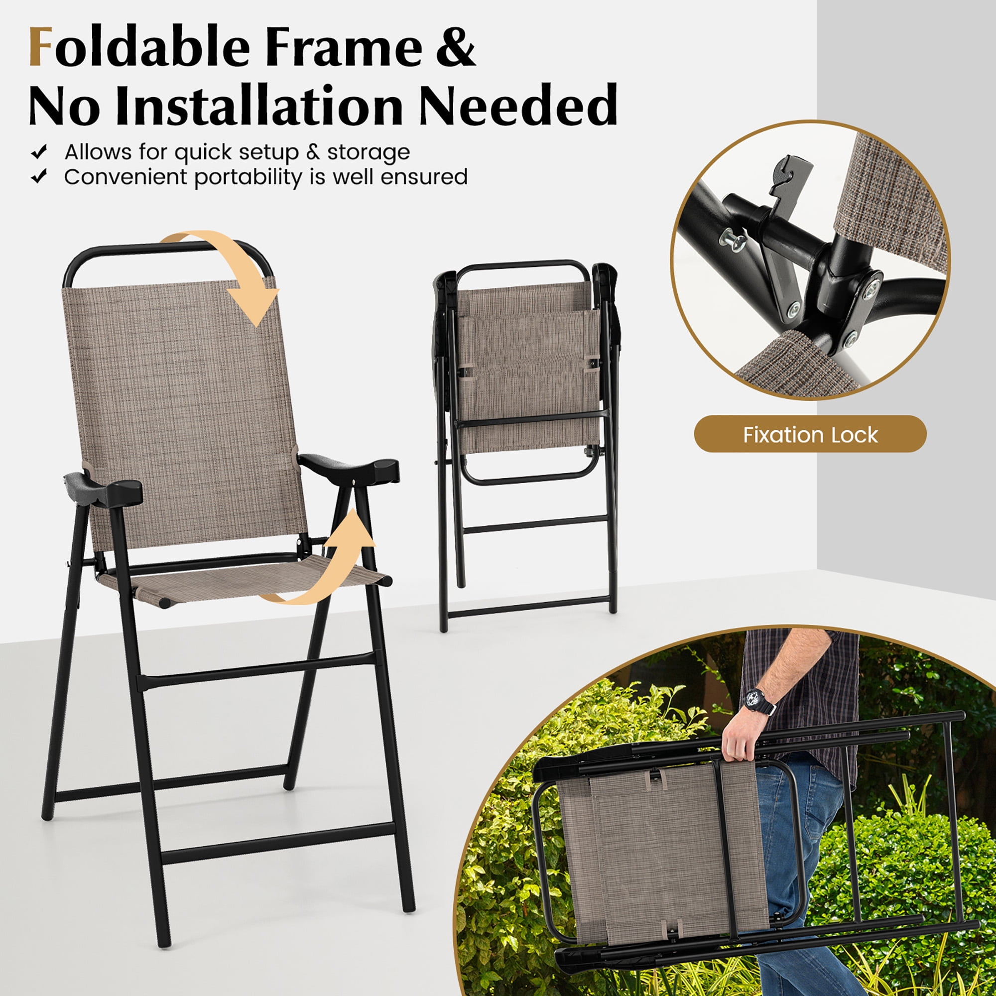 Gymax 4 PCS Patio Bar Chair Folding Bar Height Metal Frame w/ Footrest Garden Brown