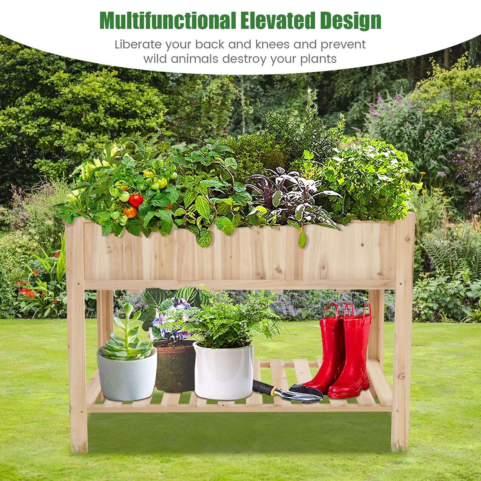 Gymax 47” Wooden Raised Garden Bed w/Bottom Shelf & Bed Liner Outdoor Elevated Planter Box