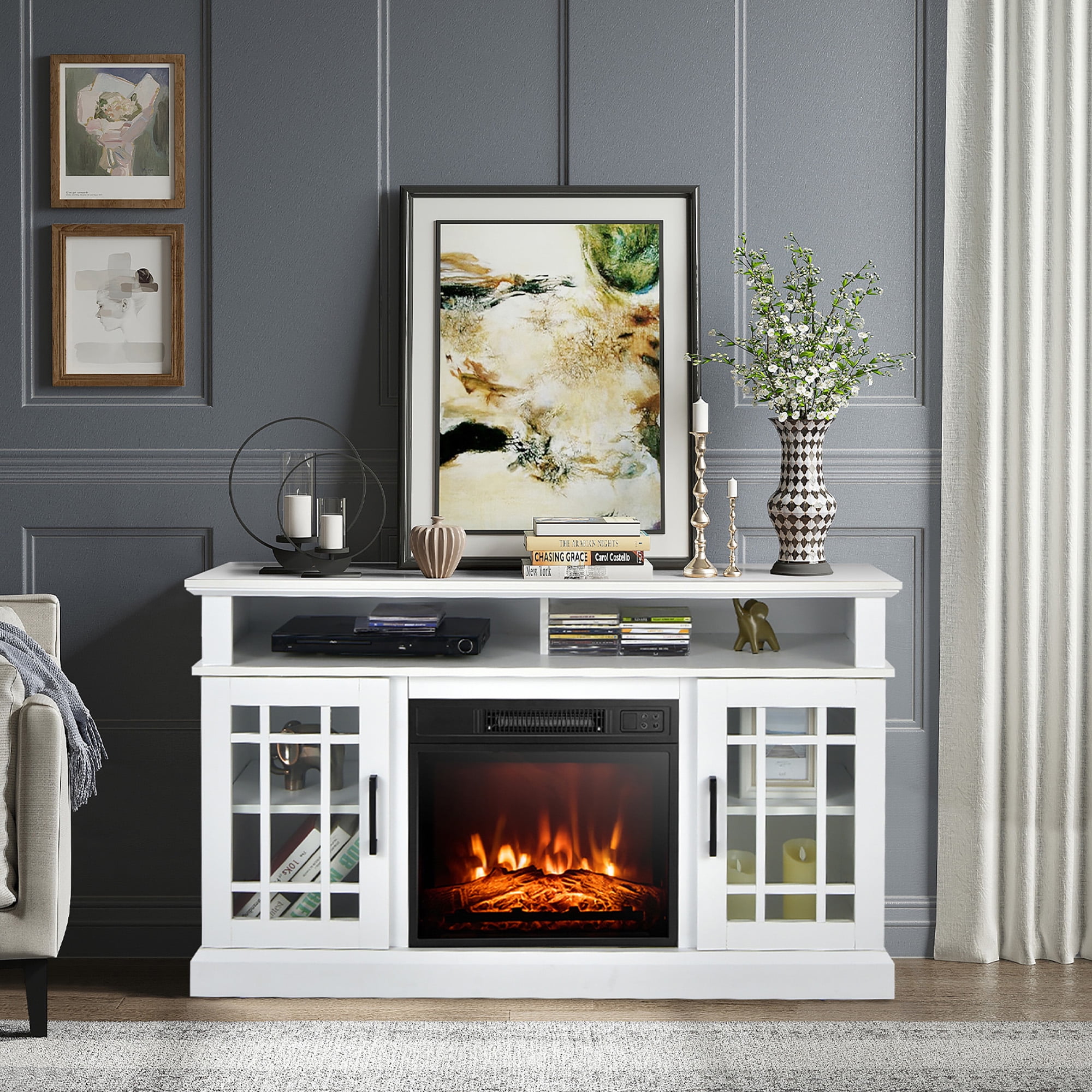 Gymax 48” TV Stand Console Cabinet w/ Fireplace Entertainment Center For Living Room White