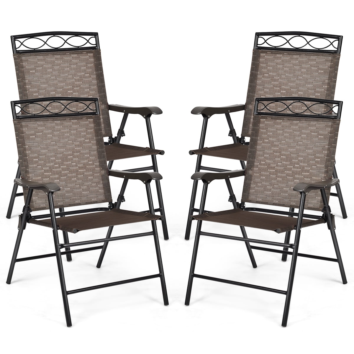 Gymax 4PCS Folding Chairs Patio Garden Outdoor w/ Steel Frame Armrest Footrest
