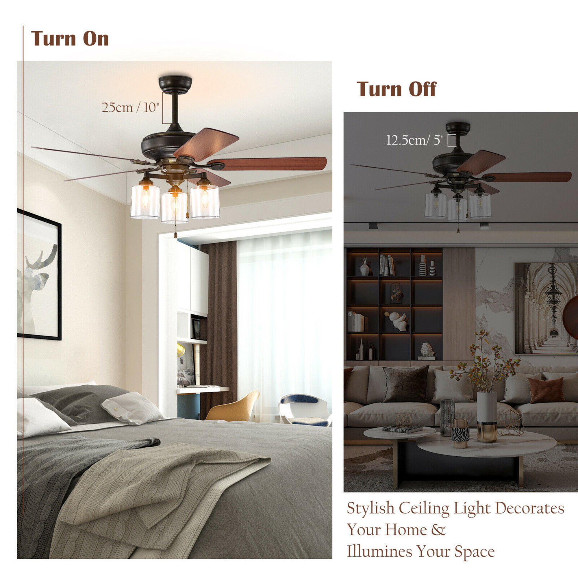 Gymax 52” Ceiling Fan Light 5 Bronze Finished Reversible Blades w/Pull Chain