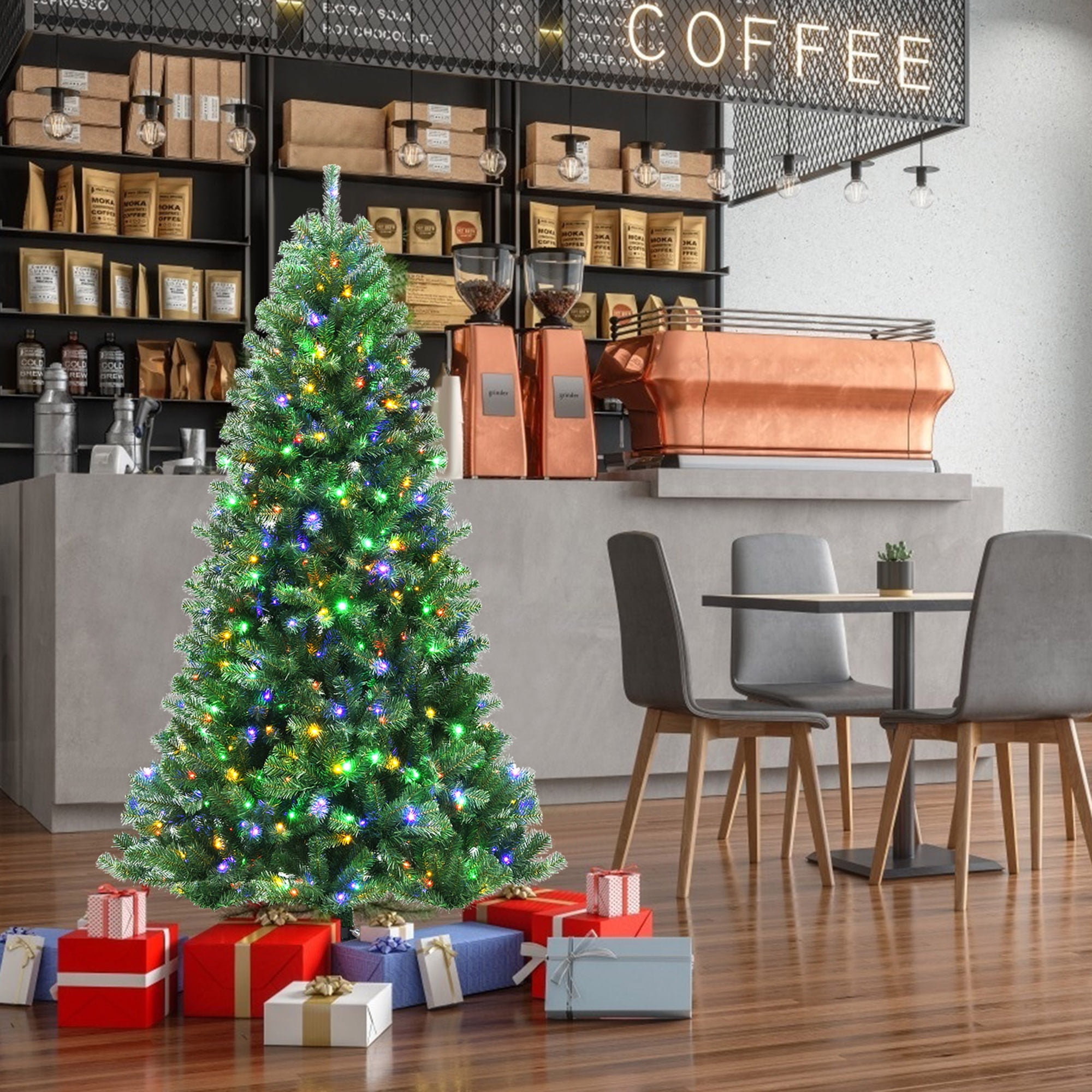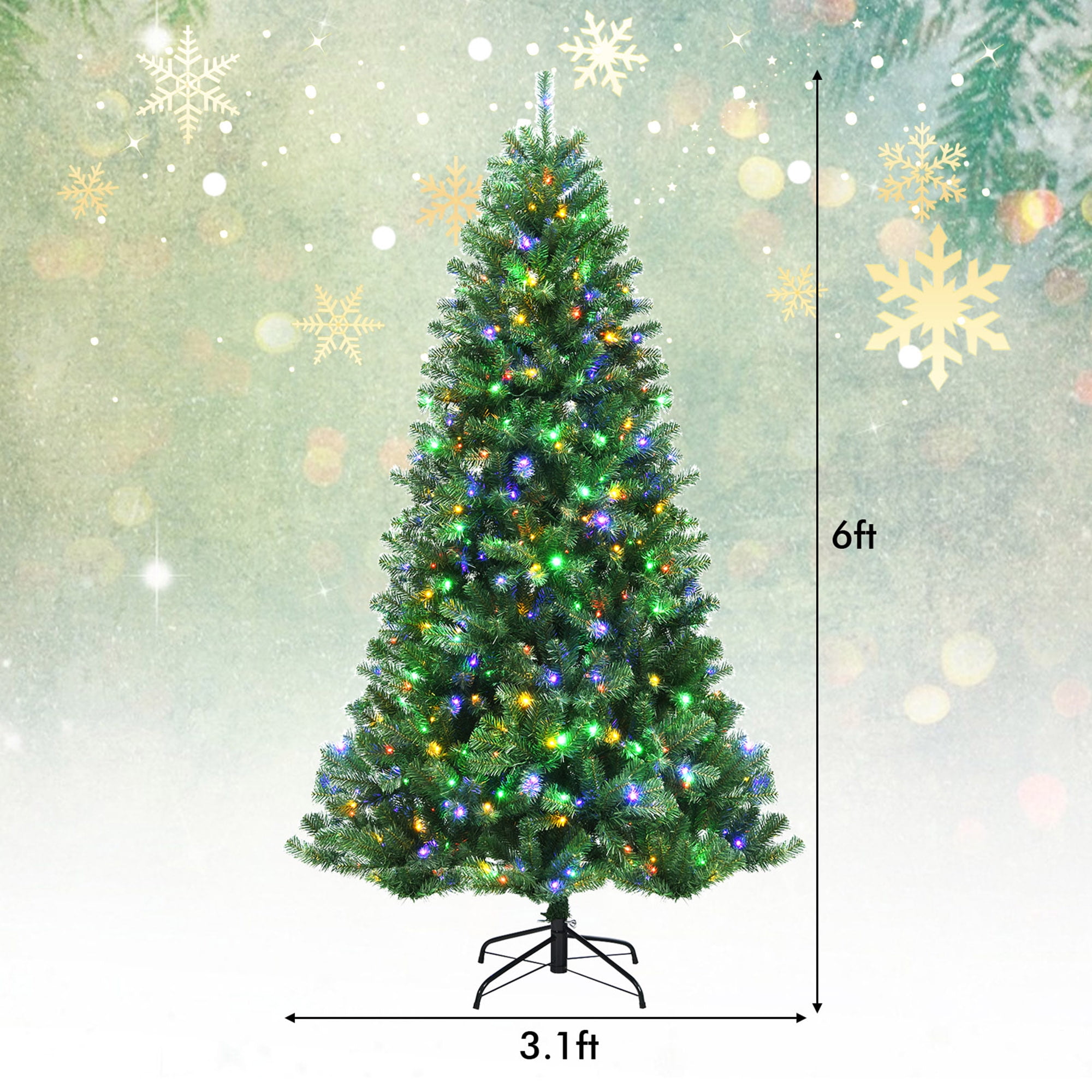 Fashionable LED Christmas Tree: The design of our full-bodied Christmas tree keeps up with the trends of times. Surrounding by pre-attached LED light strings, this artificial tree is able to creating different atmosphere according to its lighting mode. So you can enjoy an exciting festival party with your friends. Dense & Thick Branch Tips: Standing at 6 feet tall, this evergreen Xmas tree consists of 845 exquisite branch tips. From a distance, it’s hard for you to tell the difference between the faux tree and real pine tree. Moreover, all tips are durable and flexible enough to be bent into various shapes. Hanging other ornaments on the tree is also available. An ideal decoration for home, school, office, supermarket, restaurant, etc