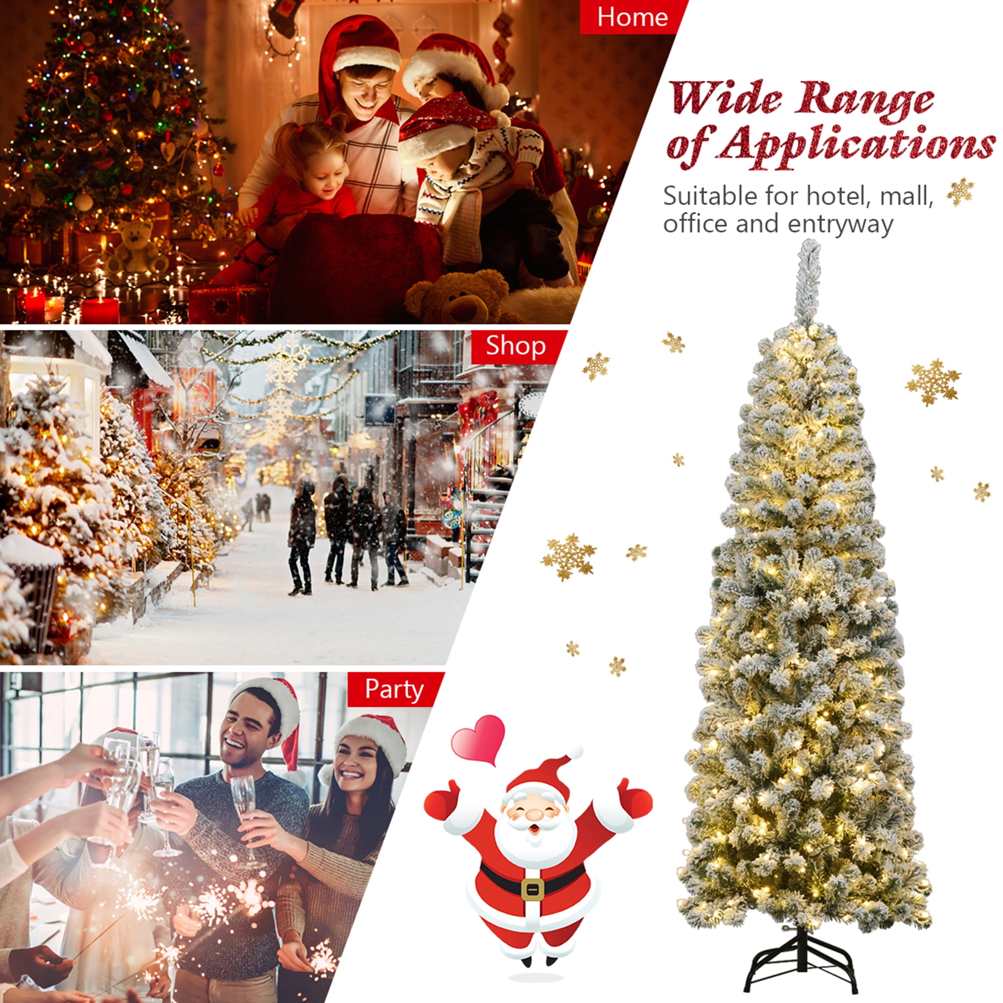 Gymax 6ft Pre-lit Pencil Snow Flocked Pencil Christmas Tree Holiday Decoration