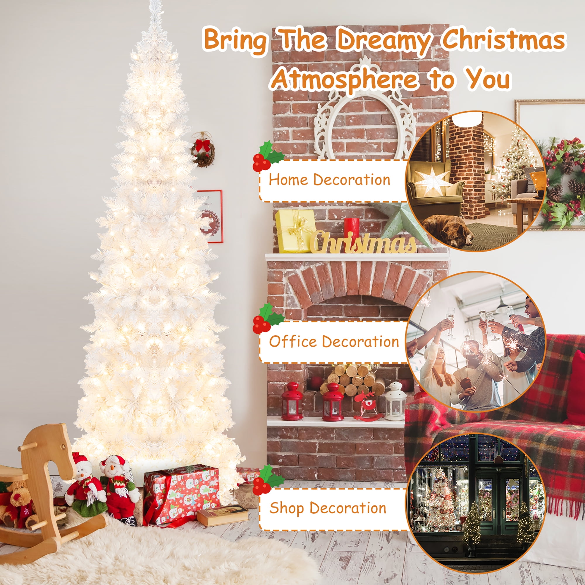 Gymax 7FT Pre-Lit Slim Pencil Christmas Tree Full Artificial Tree w/ LED Lights