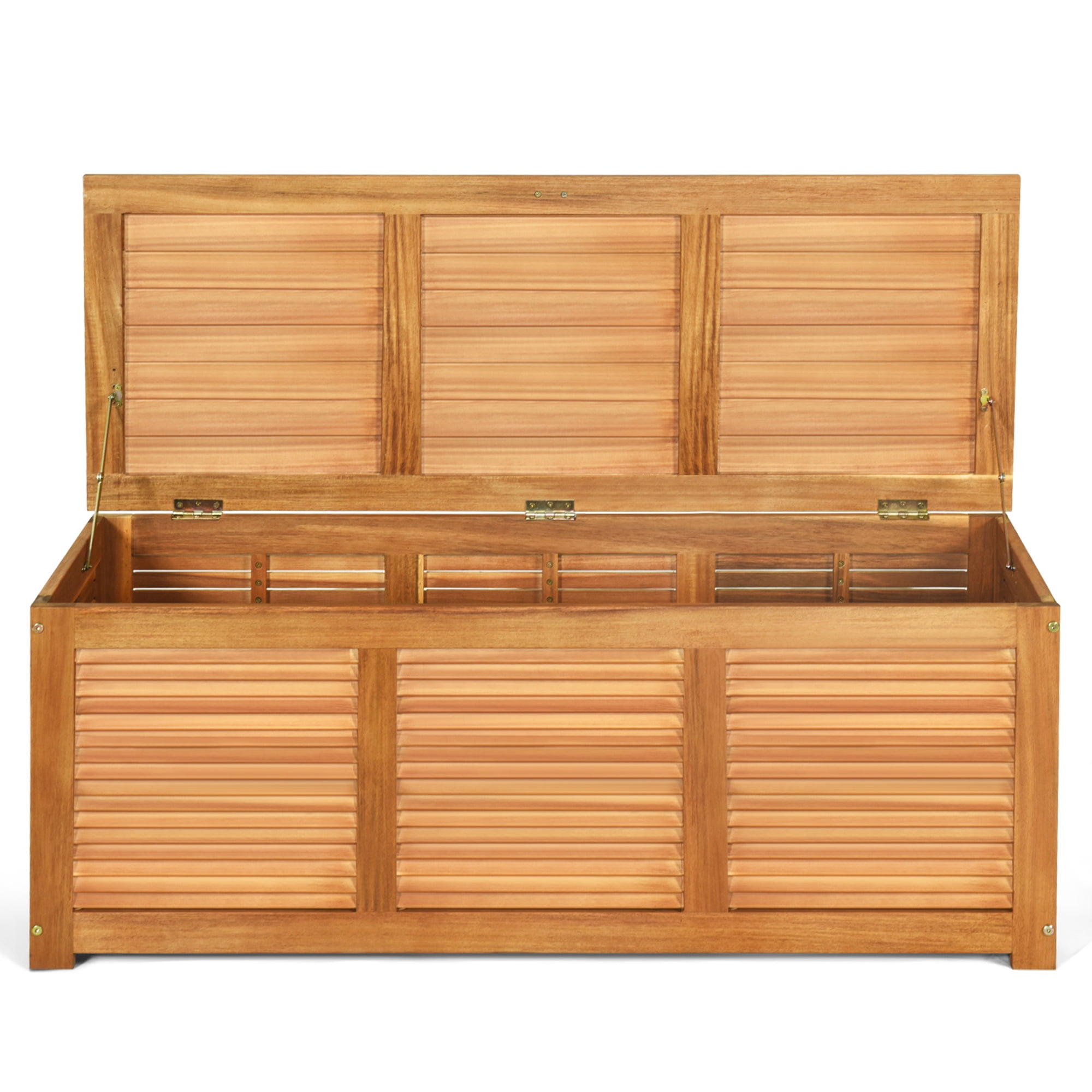 Gymax Acacia Wood Deck Box 46 Gallon Garden Backyard Storage Bench Container