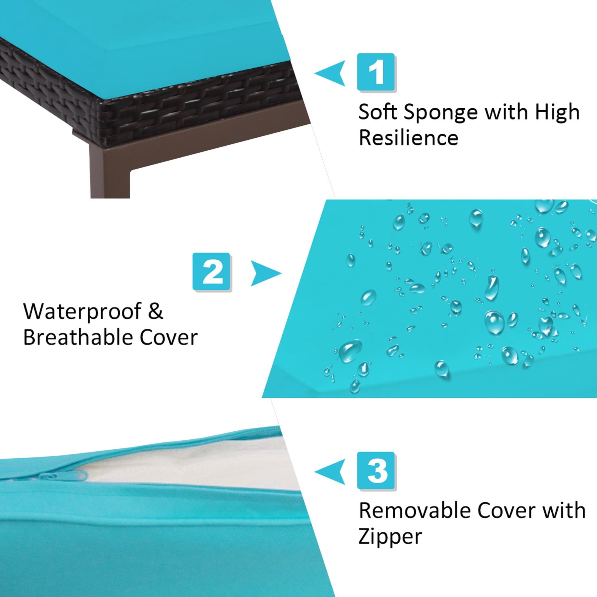 Gymax Adjustable Rattan Chaise Recliner Lounge Chair Patio Outdoor w/ Turquoise Cushion
