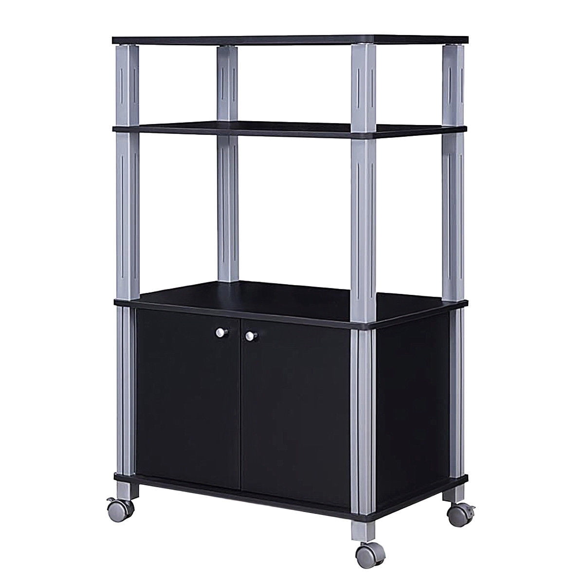 Description: Our microwave stand will make your kitchen neat and tidy, give you a high quality and more convenient life. Made of laminated p2 MDF, and with solid frames at the corners, this stand is sturdy and durable. 3 shelves and 2-door cabinet provides spacious room for storing kitchenware, cooking ingredients and other items. You can move it easily with the caster wheels at the bottom. Cleaning and assembly are both quite simple. It is also a versatile cart which can be used in many appropriate places. Do not hesitate, just add it to your cart now ! Featuring 3 shelves and 2-door cabinet with plenty storage space 3 shelves with different heights for storage of different kitchen items Storage cabinet provides spacious room for placing dishes and kitchenware Easy movement with wheels Frames ensure solidity, while cabinet increases stability Laminated surfaces easy for cleaning and maintenance Simple assembly required Specification: Material: P2 MDF+Plastic Color: Black (as the pictures show) Net Weight: 23 lbs Load Capacity per Shelf: 22lbs Overall Dimension: 23.5”x15.5”x38.5” (LxWxH) Package includes: 1 x Microwave Stand 1 x Instruction Manual