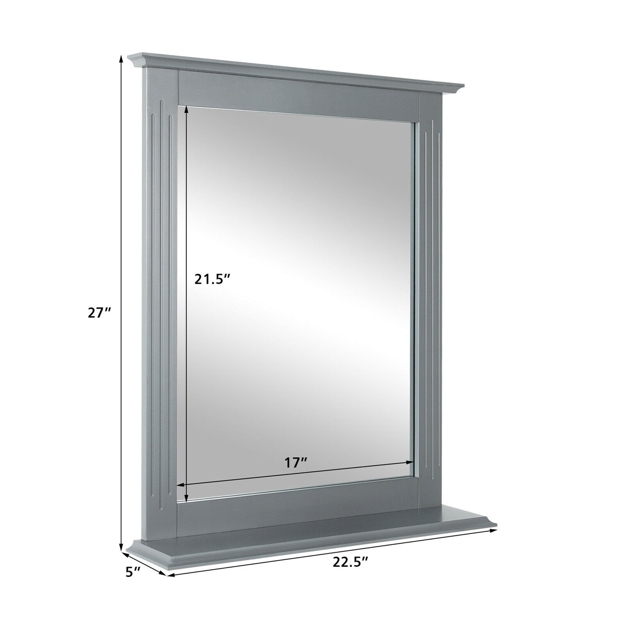Gymax Bathroom Wall-Mounted Mirror W/Shelf Vanity Makeup Mirror Multipurpose Gray