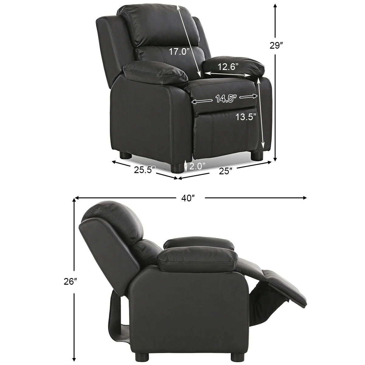 Gymax Deluxe Padded Kids Sofa Armchair Recliner Headrest Children w/ Storage Arm Black