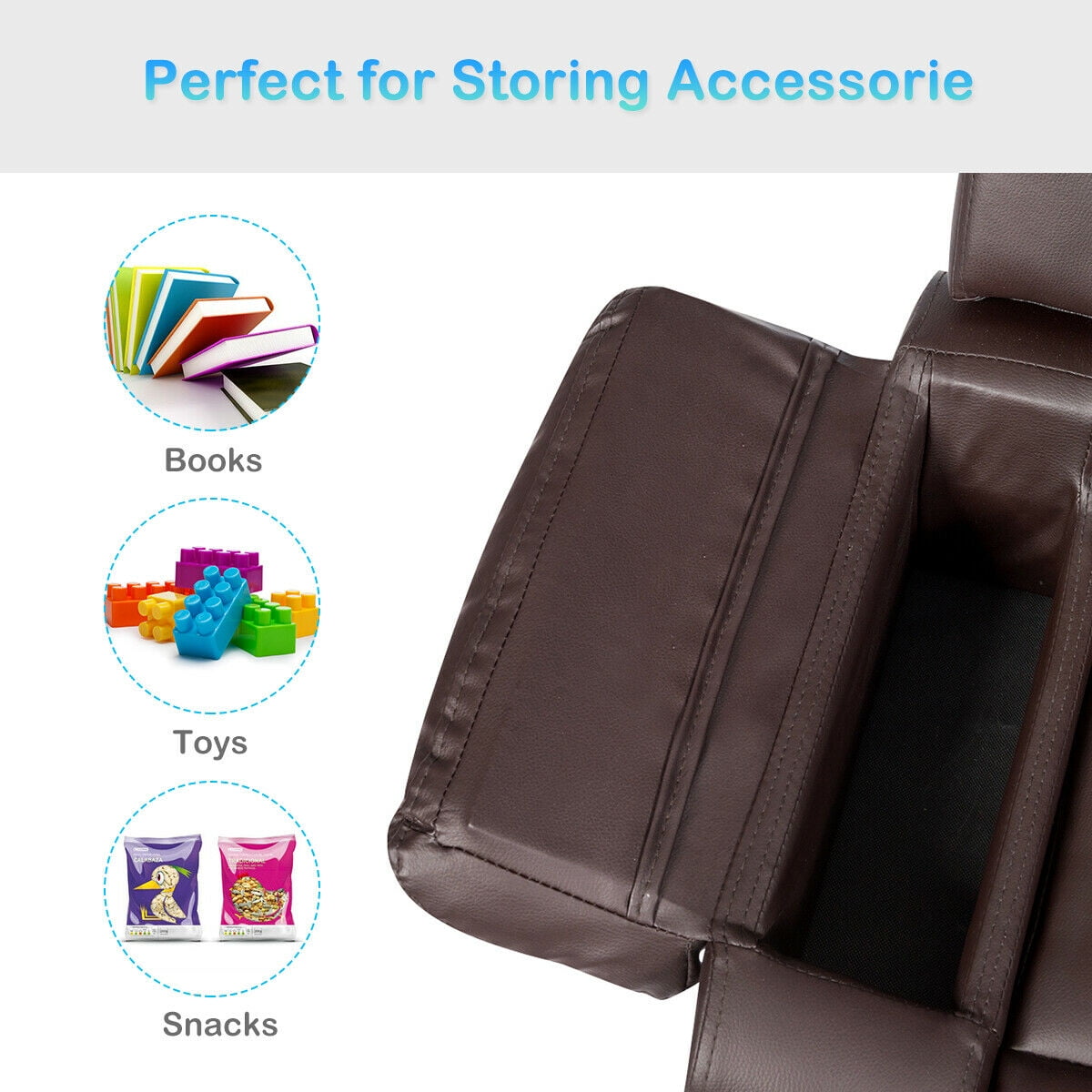 Description: Our PU leather kids sofa is designed to keep your children safe and comfortable, and it’s perfect for them to sit or lay on. They can read, eat snacks and watch TV on their own furniture with much entertainment to spare the leisure time. Filled by soft sponge, the seat is 2” thick so that gives your children much more comfort. Other than that, special design of the flip-up armrest allows your child to store snacks, books and cups so that your child can find the items in need within reach. And most importantly, covered by PU leather, this sofa is totally safe and healthy to your children because it is non-toxic and odorless. Don’ t hesitate to buy this sofa! Specification: Color:Brown Material: PU leather, Sponge and Iron Product Dimensions: 22” x 19.5” x 29” (L x W x H) Overall Size (fully extended): 36” x 39.5” x 25” (L x W x H) Height of Armrest: 19” Net weight: 33.5 lbs Maximum weight capacity: 110 lbs Suitable for ages: 2 – 8 years old Package includes: 1 x Kids Sofa 1 x Instruction