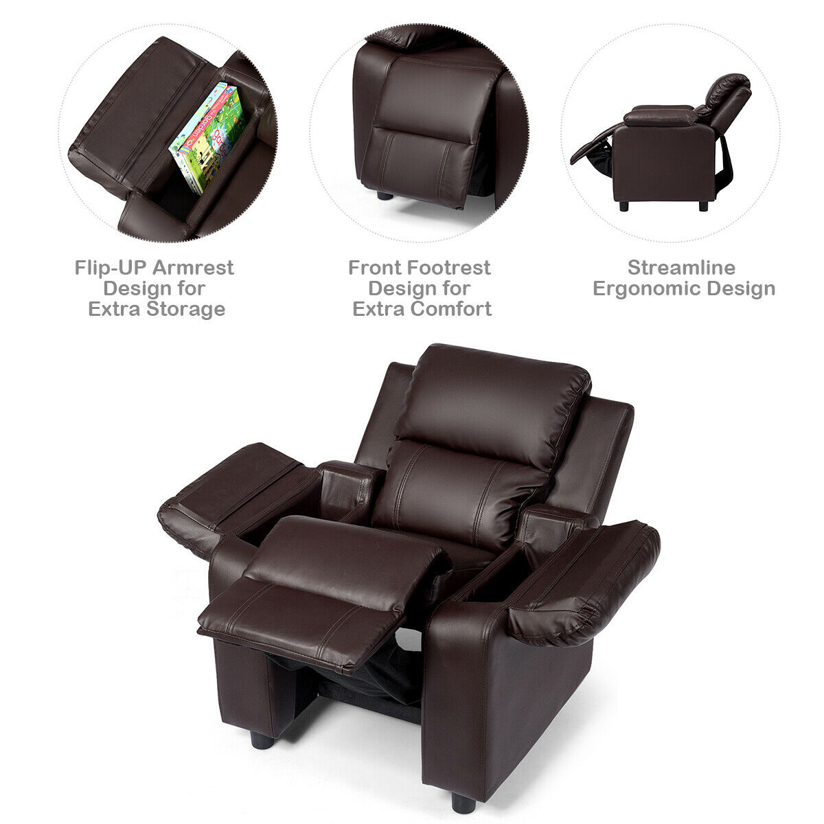 It is the best gift for children and can be placed in kids’ room, bedroom and living room Filled with high density sponge and equipped with padded backrest for soft experience Made of PU leather and iron frame, it’s sturdy and durable for long time use Sturdy non slip feet keep it off of the ground so it won’t get dirty or slide around Reclining backrest and adjustable footrest is ideal for sleeping, watching TV or other leisure time