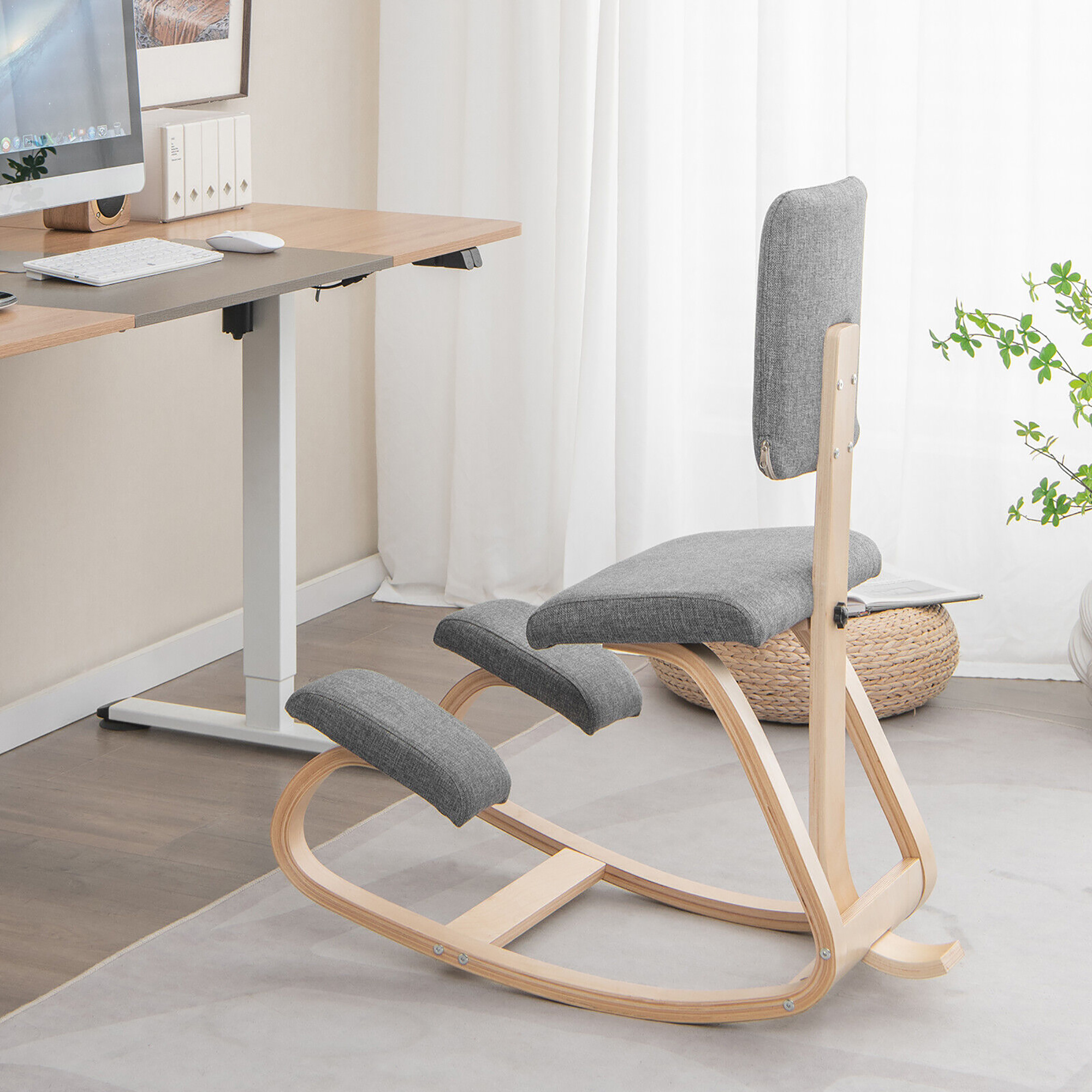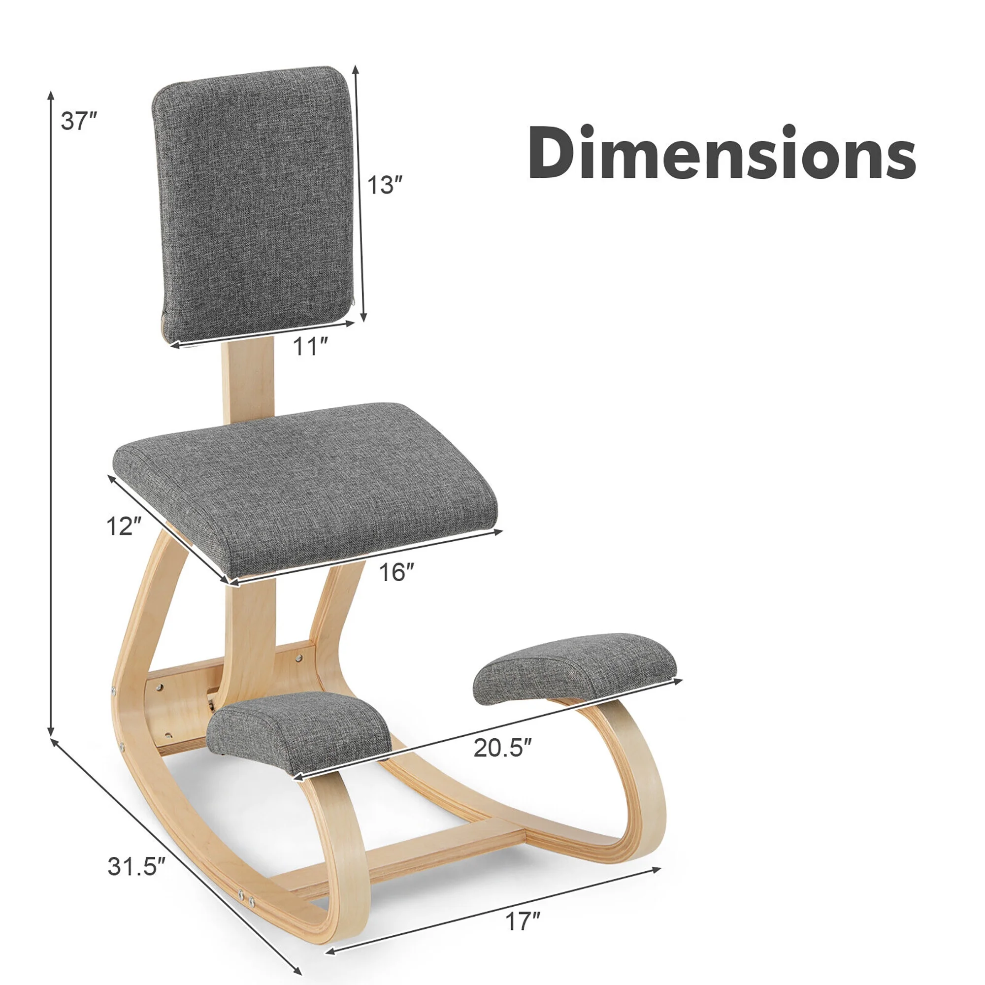 Gymax Ergonomic Kneeling Chair Upright Posture Polyester Support Chair with Backrest