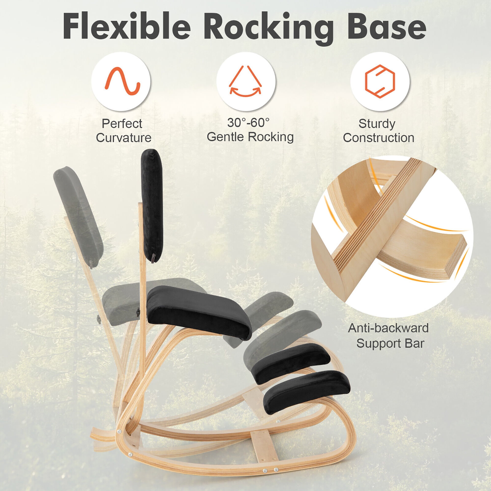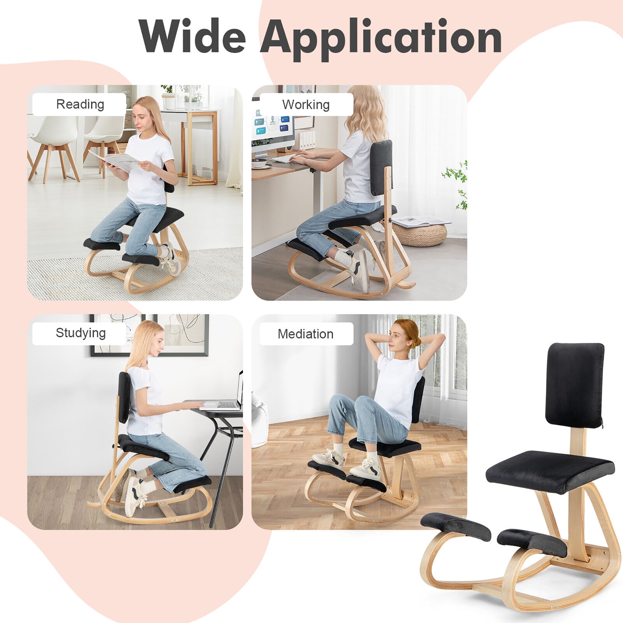 Gymax Ergonomic Kneeling Chair Upright Posture Velvet Support Chair with Backrest