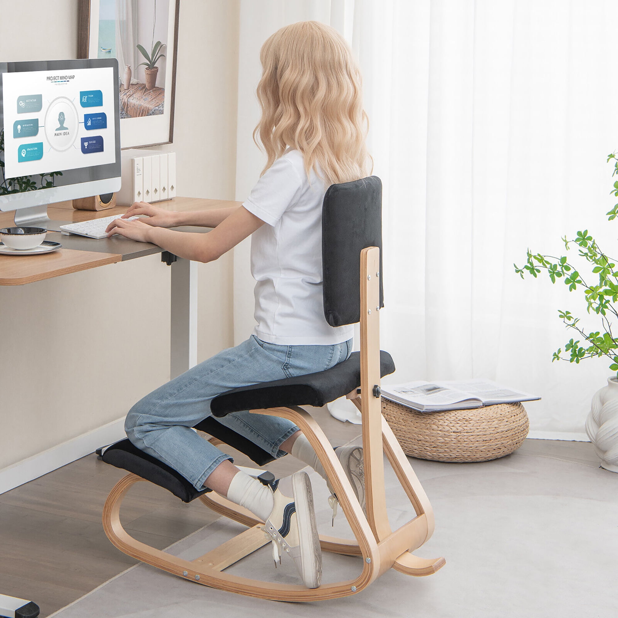 Improve Sitting Posture: The kneeling chair is designed for the optimal spine comfort. By adding 2 knee cushions, it makes you work in a kneeling posture, thus to achieve better spine alignment and relive pressure on neck, shoulder and waist. Comfortable Cushions: The rocking office chair is also equipped with soft backrest, seat and knee cushions, padded with 50D high-density sponge and covered with skin-friendly velvet cover/breathable fabric for maximum comfort. Rock to Relax: The posture chair features a flexible rocking base, with perfect curvature to achieve 30°-60° gentle rocking for better relaxation. What’s more, there’s an anti-backward support bar to prevent it from tipping over. Solid Birch Wood Frame: Crafted from solid and durable birch wood material, the mediation chair offers a sturdy construction for long-time company. It is well-crafted for a smooth & burr-free surface. And there’s a reinforced crossbar for added sturdiness. Easy to Assemble: The ergonomic chair has a relatively simple structure for easy assembly. Just follow the steps and tighten the screws! The detailed instructions will be of great help. With anti-backward protection in against of tipping over Soft cushions help to alleviate soreness & stiffness Strong wooden frame offers 300 lbs large capacity Wide application includes reading, working, studying and mediation