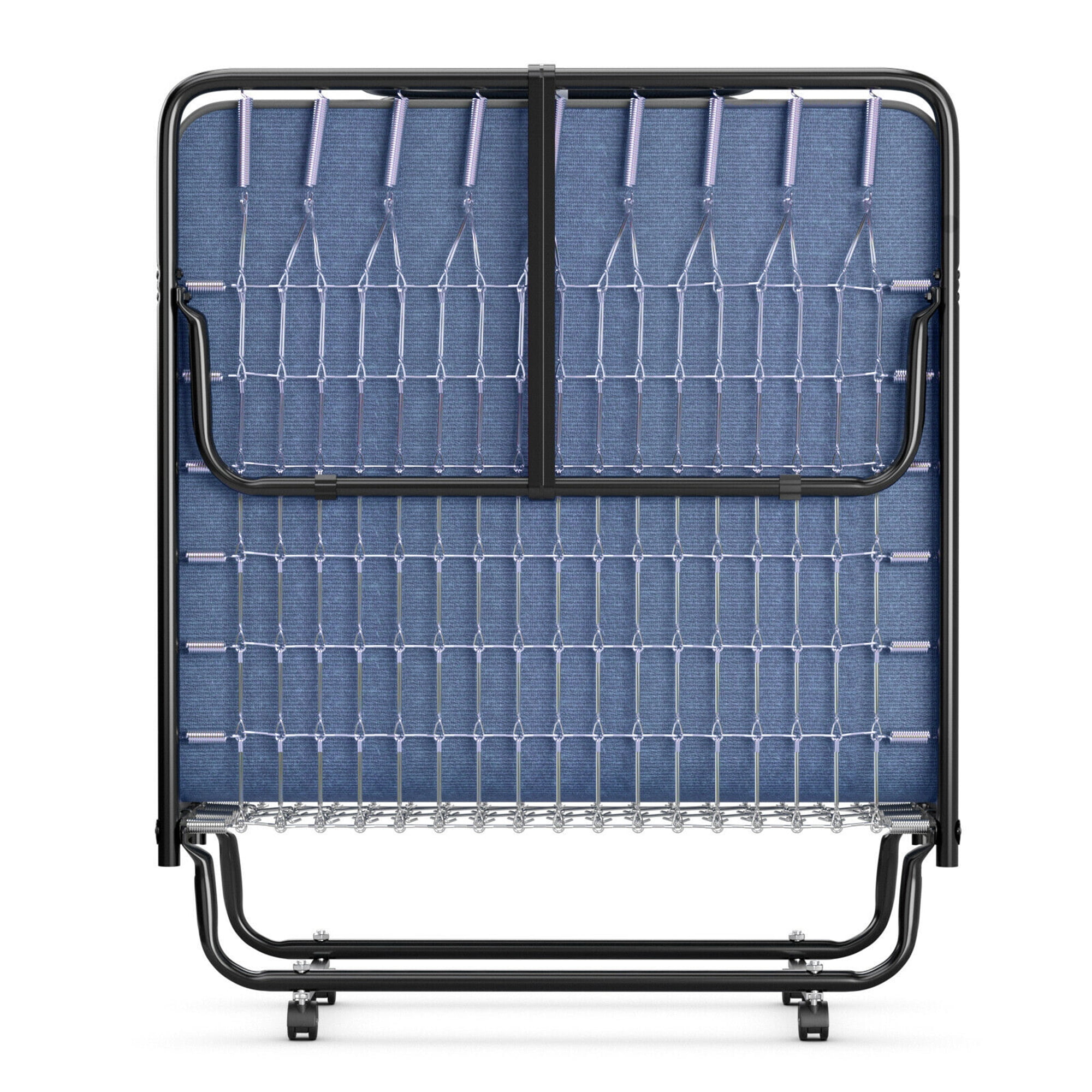 Heavy-duty Steel Frame: The rollaway bed is constructed of powder-coated frame, providing you with better support and high reliability. In addition, the reinforced steel wire and tightly connected hardware enhance stability for long-term use. And it is sturdy enough to hold people up to 440 lbs.Under Bed Storage & Wide Application: Additional under-bed space not only provides sufficient storage space for idle things, but also brings much convenience to clean the room. Whether you want to use it as the perfect centerpiece for the bedroom or an extra bed for guests, you or your guests will take a comfortable sleep in this stylish bed.Easy Movement & Assembly: The folding bed is designed with 4 flexible casters for great mobility, thus you can move it to anywhere without effort. This rollaway bed comes with tools and screws for effortless assembly. The detailed instruction also helps you shorten installation time.