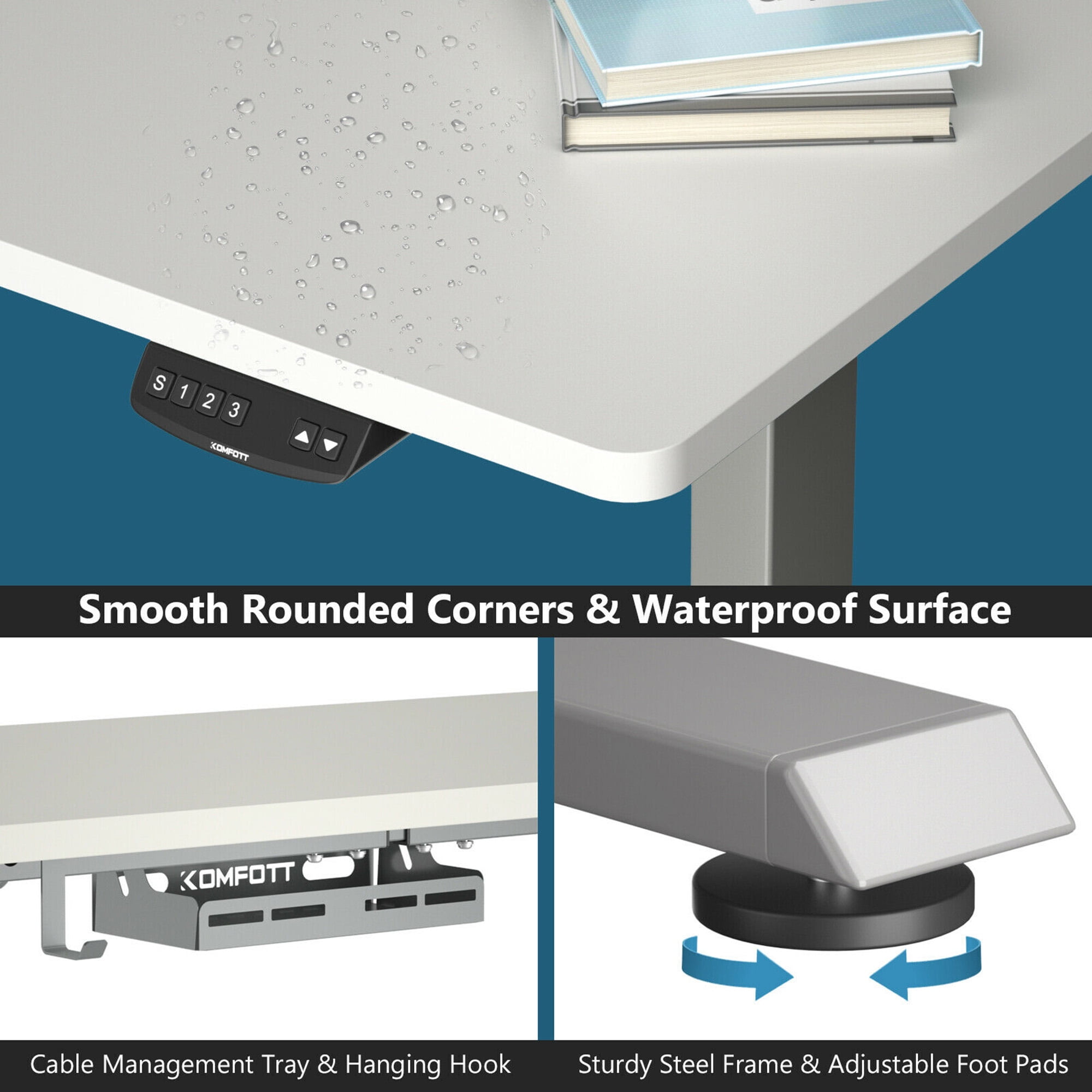 Thickened base with adjustable foot pads for exceptional stabilityAnti-collision design protects the desk from bumps and scratches3 Height memory settings for whole family usage