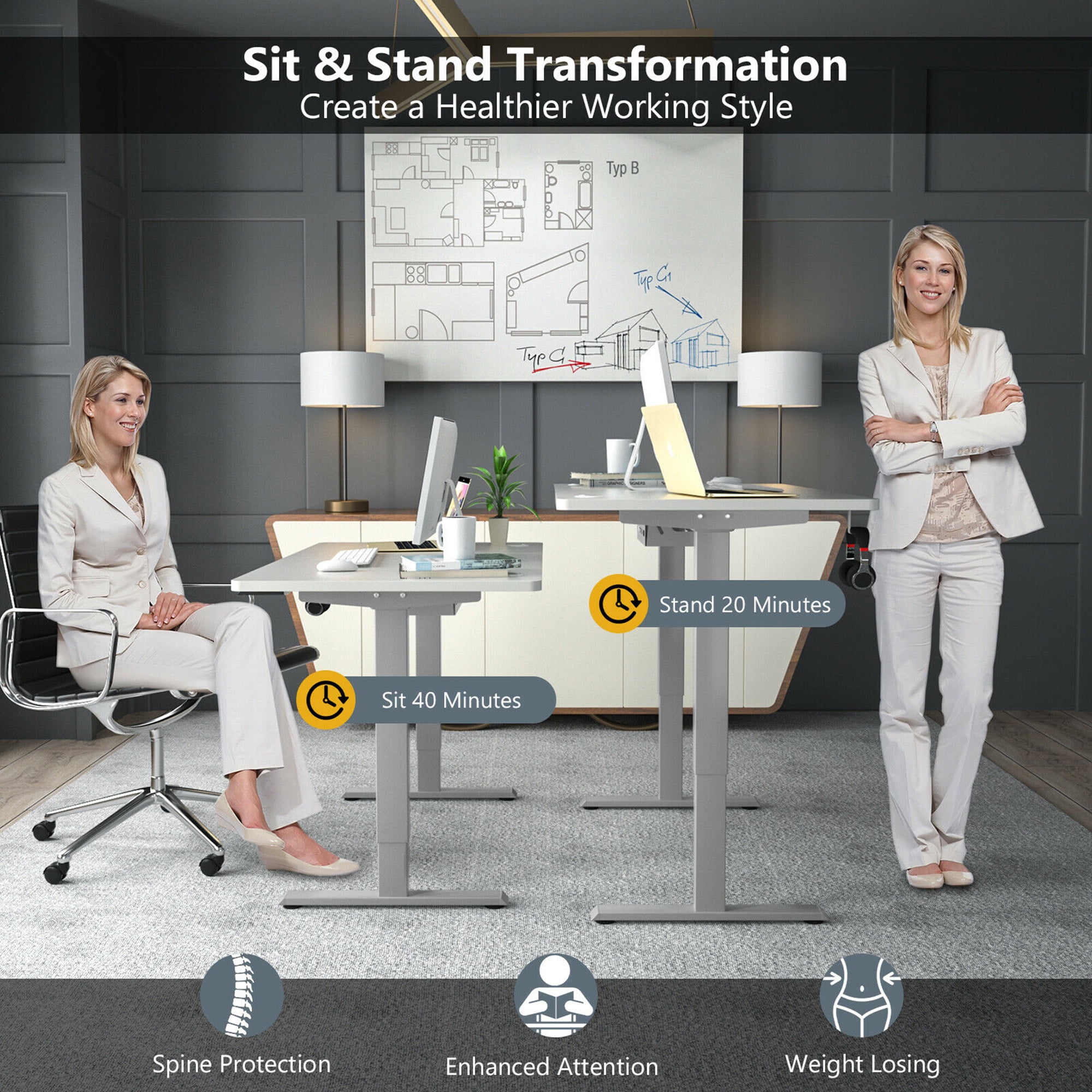 Gymax Electric Standing Desk Sit to Stand Height Adjustable Dual Motor Grey