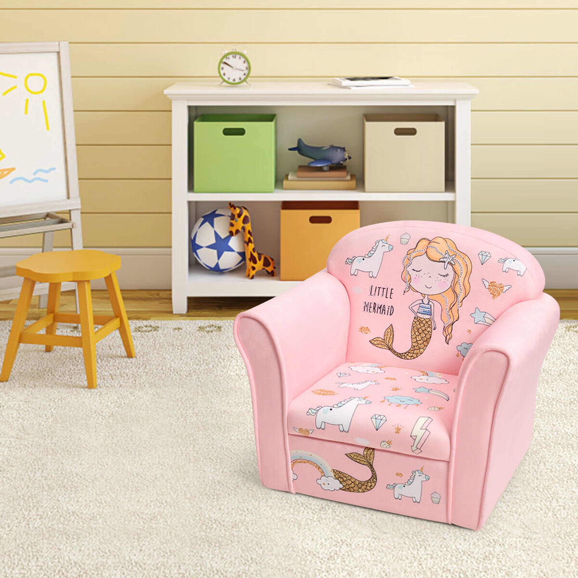 Gymax Kids Mermaid Sofa Children Armrest Couch Upholstered Chair Toddler Furniture