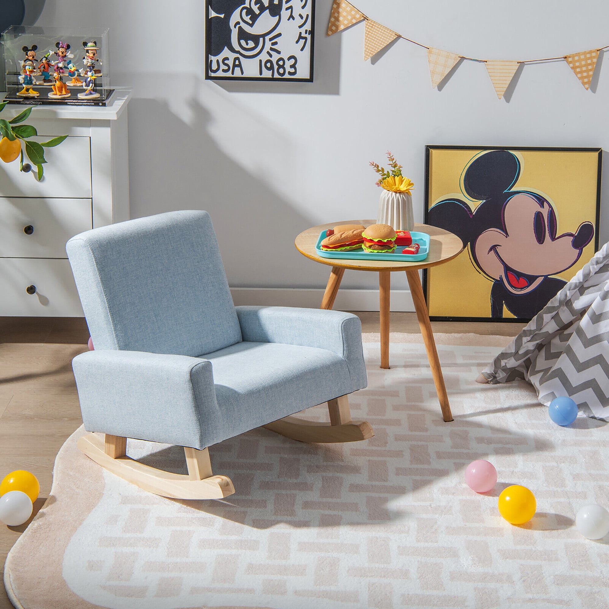 Gymax Kids Rocking Chair Children Armchair Linen Upholstered Sofa w/ Solid Wood Legs Blue
