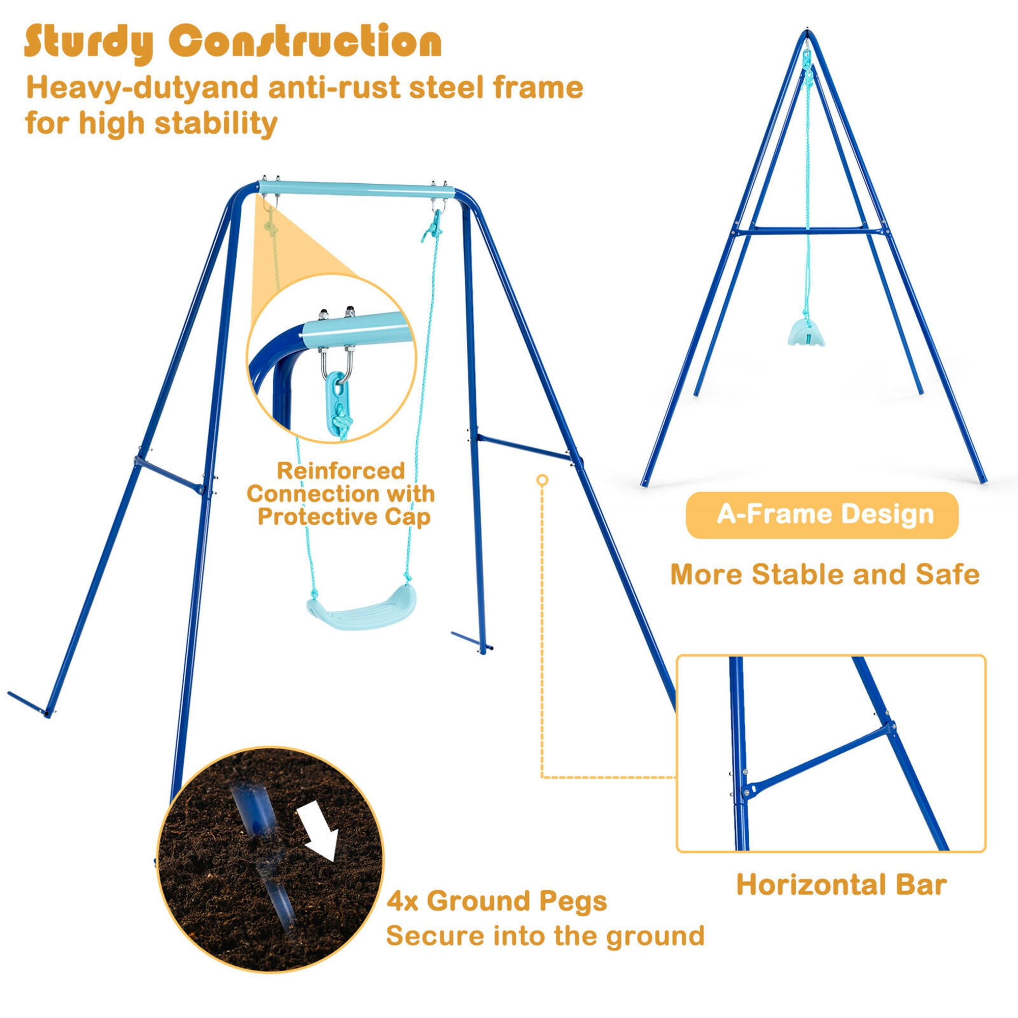 Gymax Outdoor Kids Swing Set Heavy Duty Metal A-Frame w/ Ground Stakes