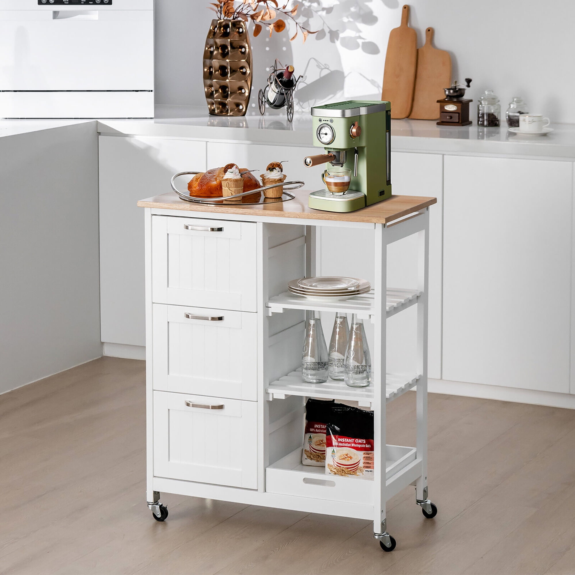 Gymax Rolling Kitchen Island Utility Storage Cart w/ 3 Storage Drawers & Shelves White