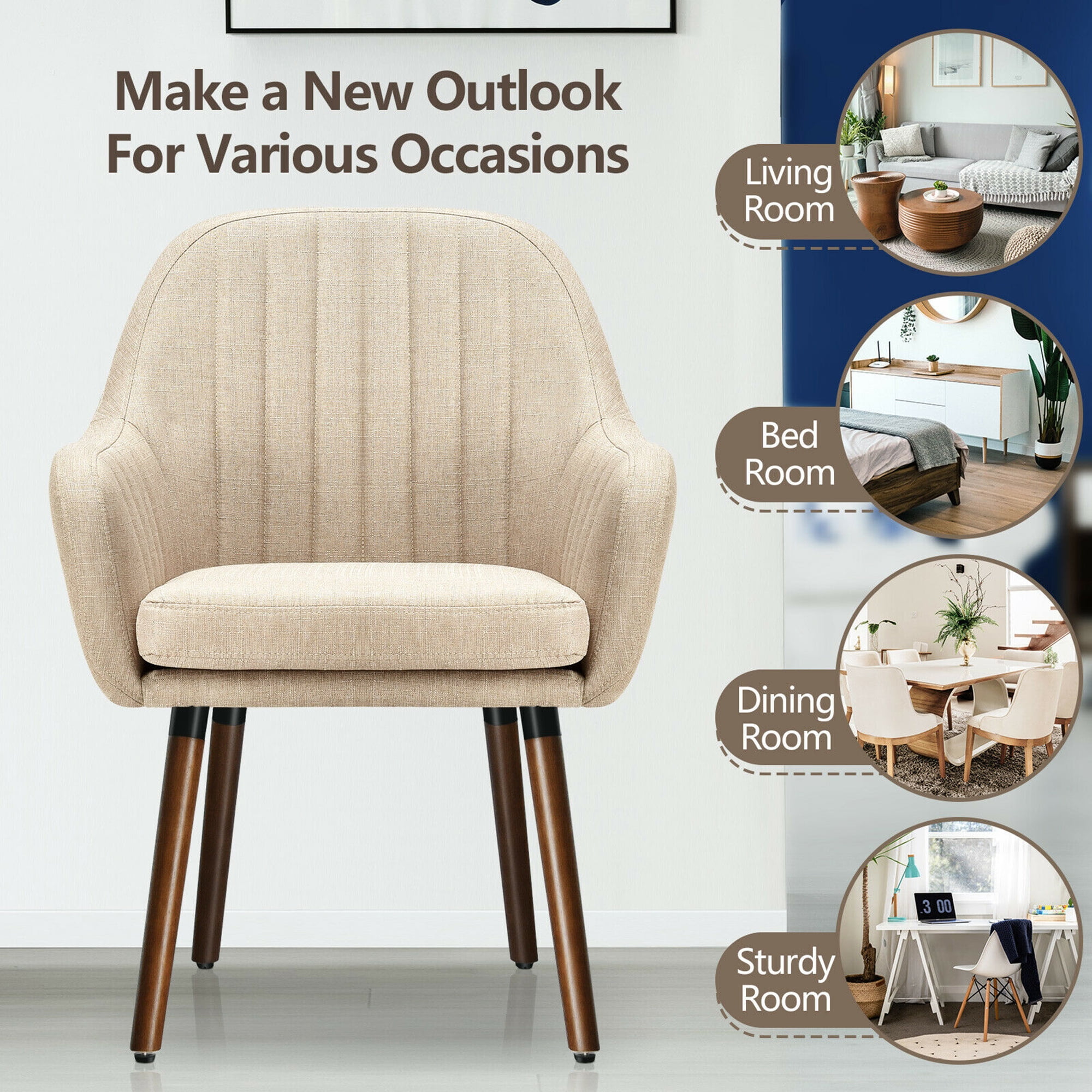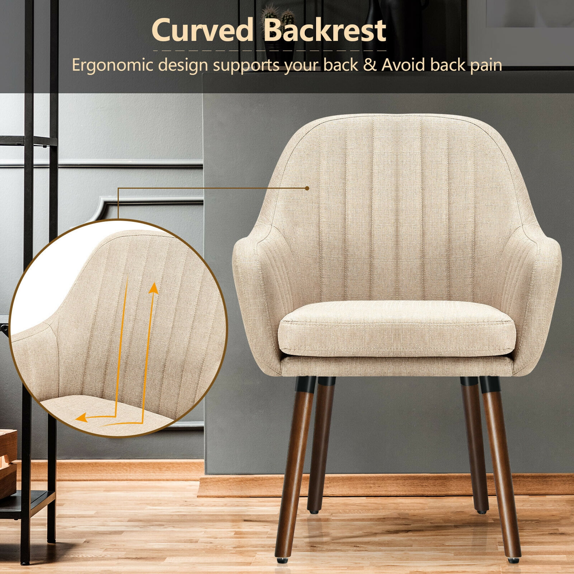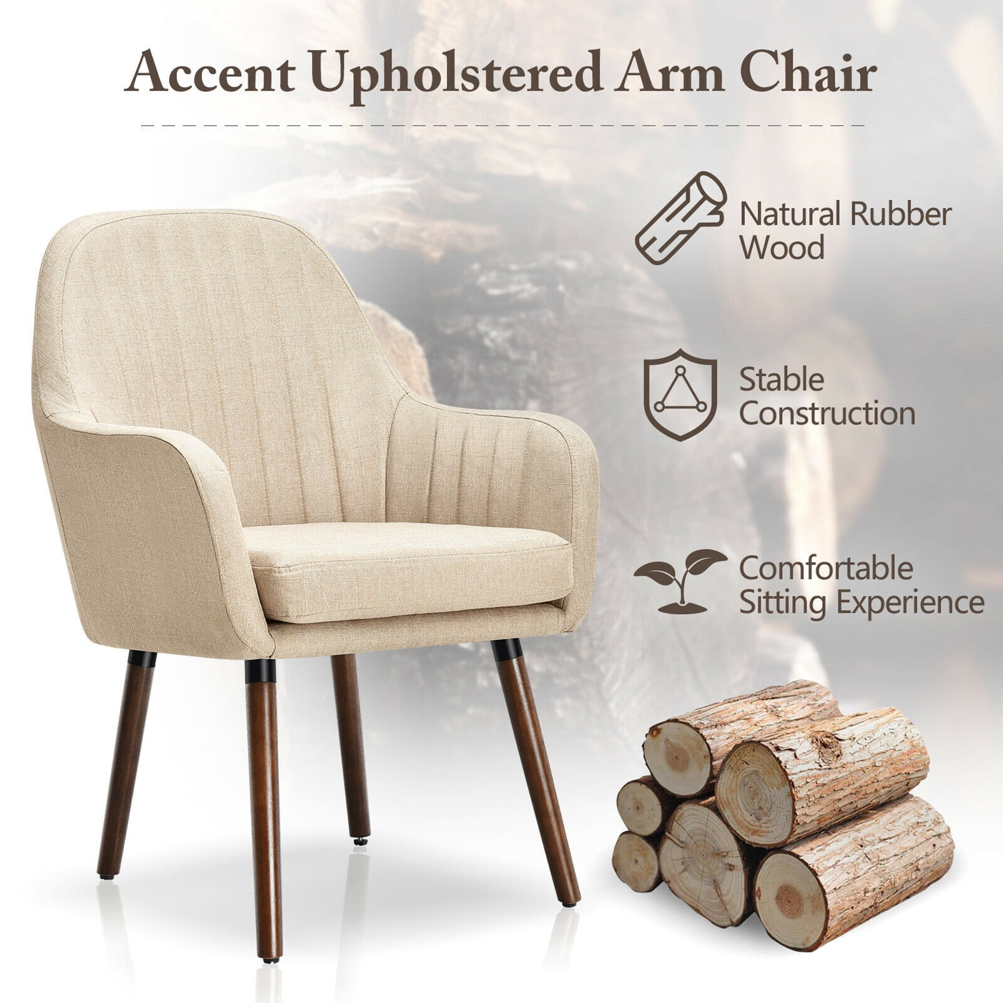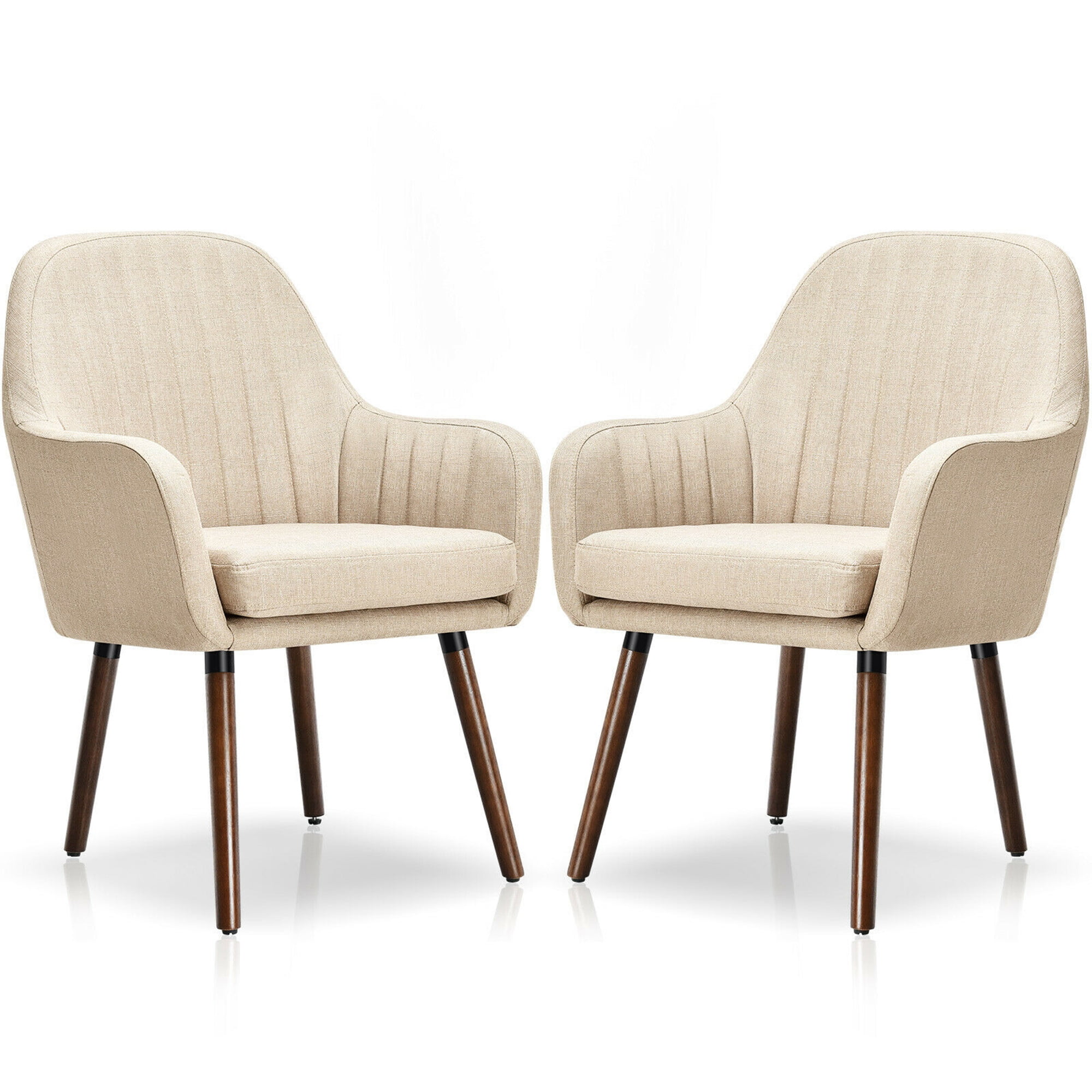 Gymax Set of 2 Accent Chairs Fabric Upholstered Armchairs w/Wooden Legs Beige
