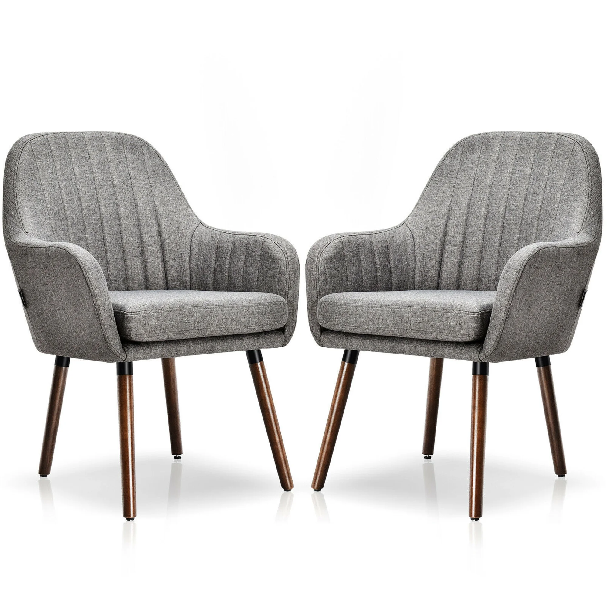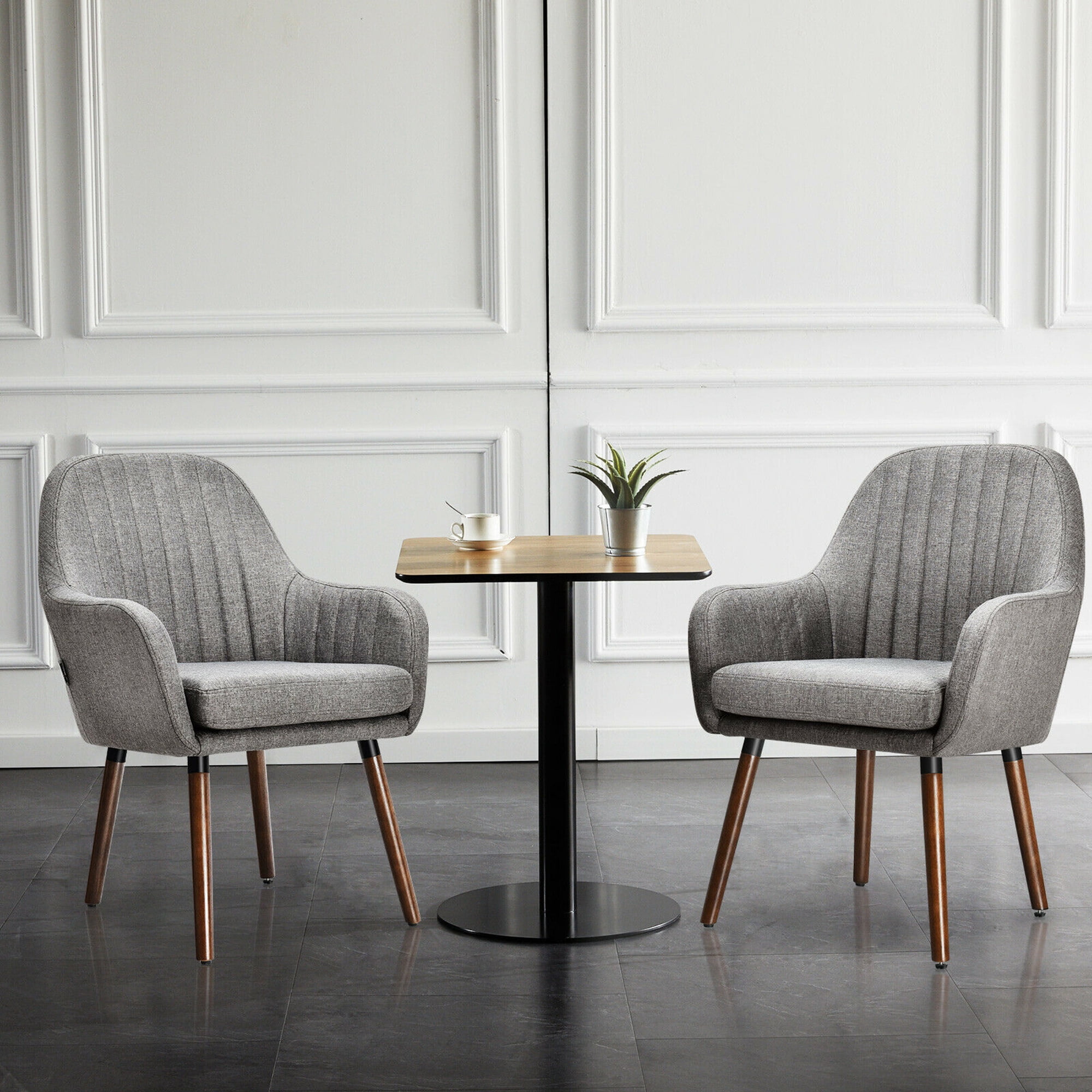 Gymax Set of 2 Accent Chairs Fabric Upholstered Armchairs w/Wooden Legs Gray