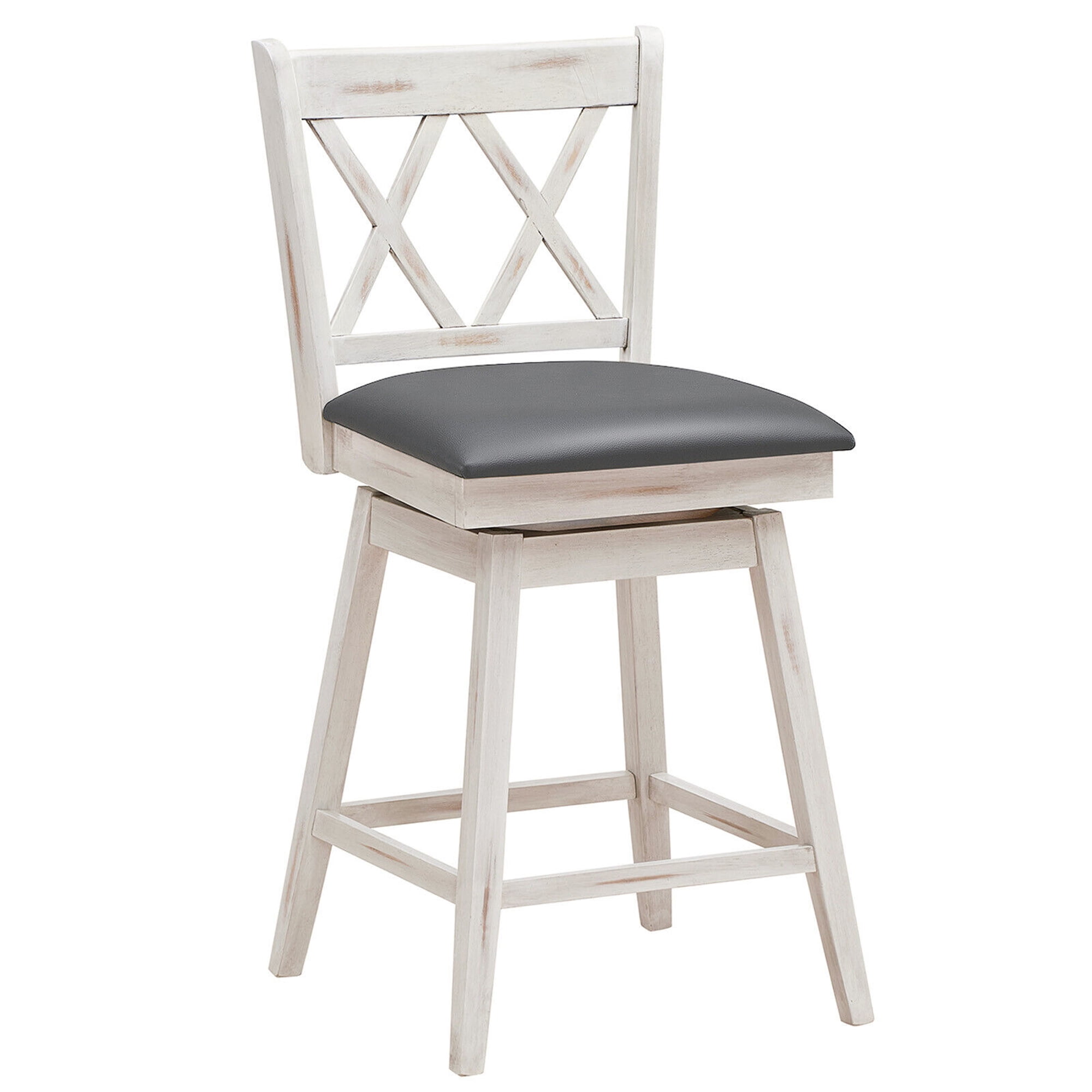 Gymax Set of 2 Barstools Swivel Counter Height Chairs w/Rubber Wood Legs Antique White