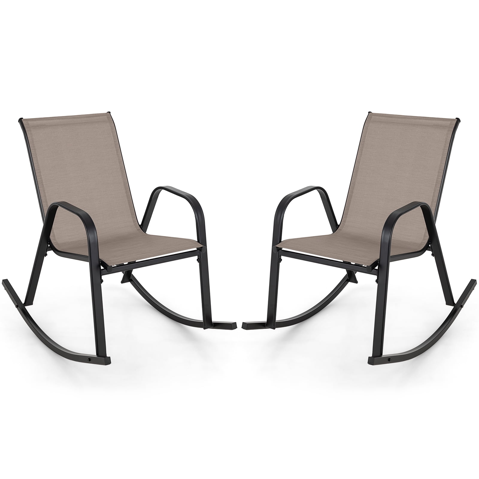 Gymax Set of 2 Metal Rocking Chair Heavy-Duty Rocker Outdoor Anti-Slip Brown Patio
