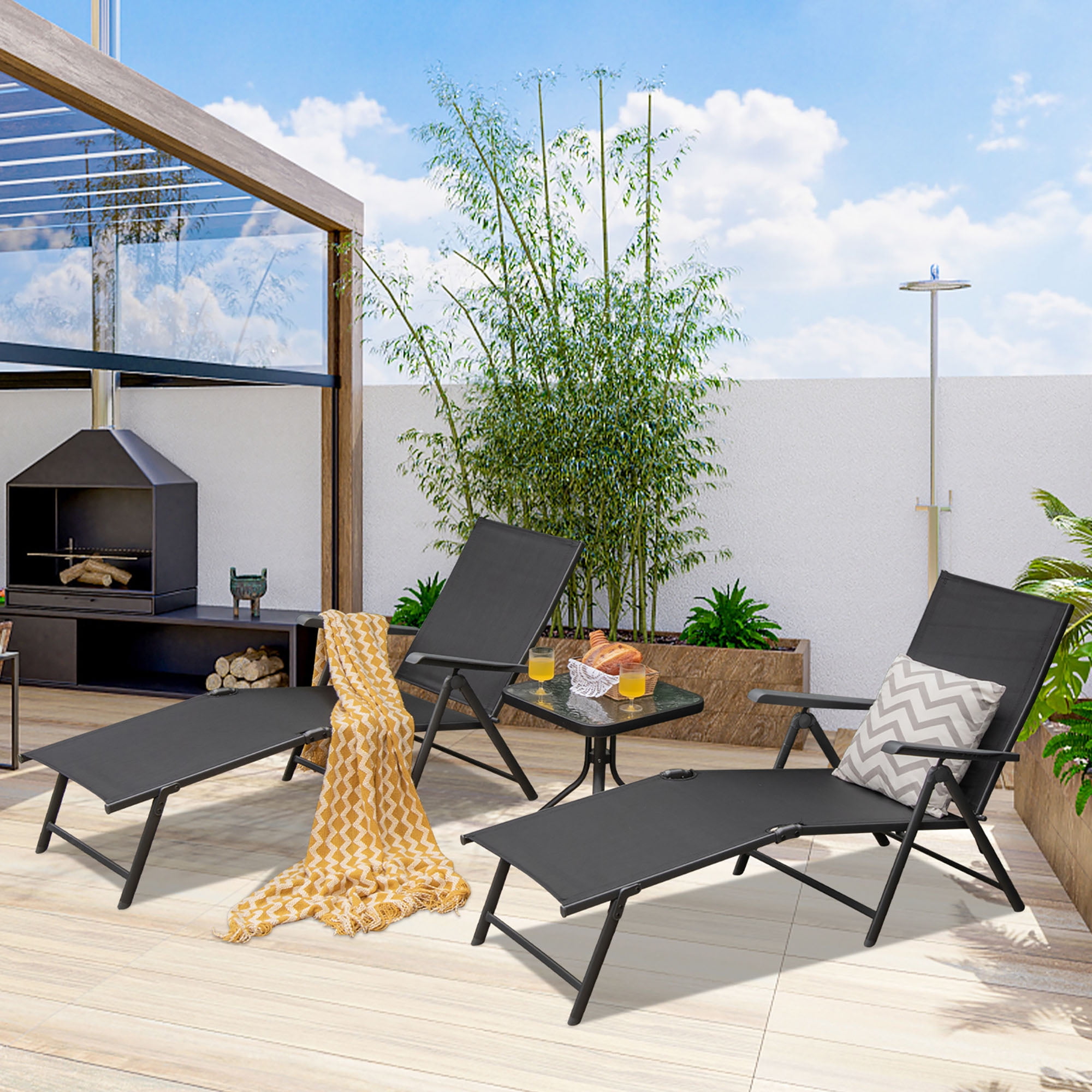 Gymax Set of 2 Outdoor Adjustable Chaise Lounge Chair Patio Folding Recliner Lounge Black