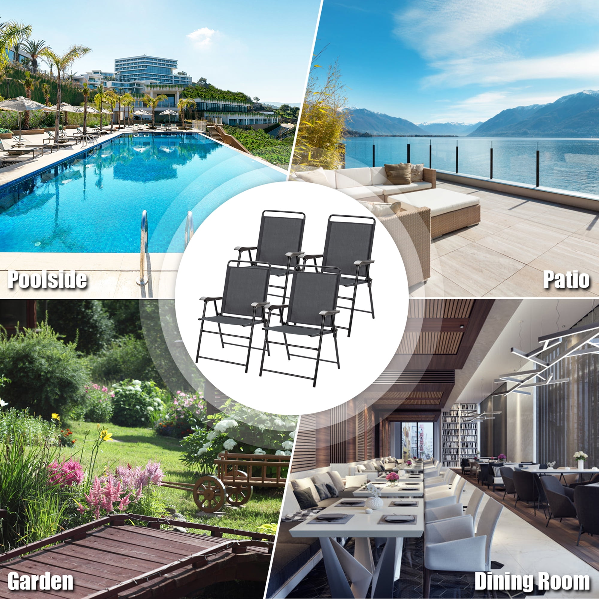 Gymax Set of 4 Folding Patio Chair Portable Sling Chair Yard Garden Outdoor