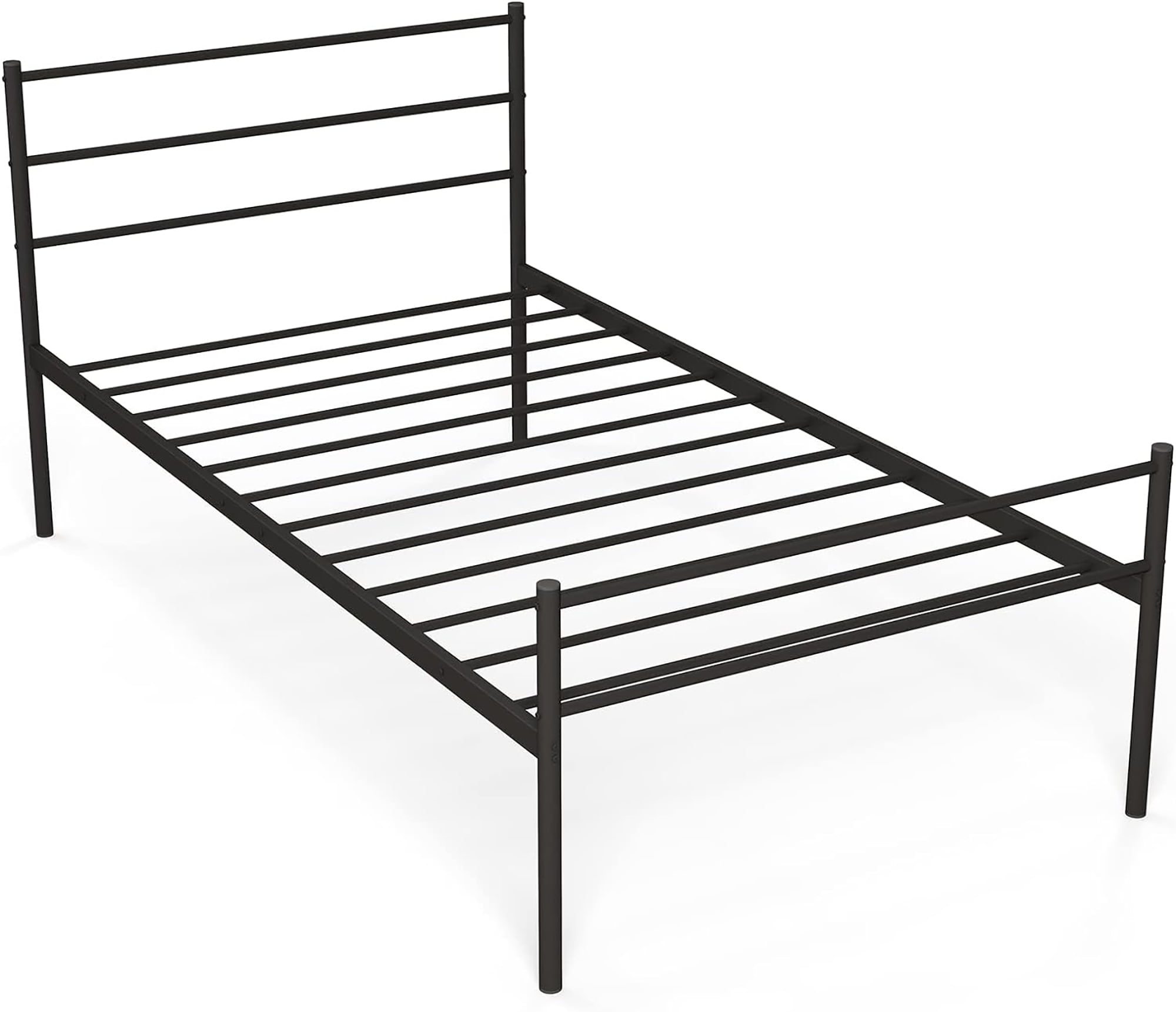 Sturdy Metal Bed Frame: Welded by high-quality steel pipes and tightly connected by Sturdy hardware, our metal bed frame is not easy to bend or deform and has a long service life. 4 heavy-duty legs provide stable and powerful support, which can withstand weights up to 220 pounds. Available Under-bed Storage: This metal bed platform features 12 inches of valuable under-bed space, which is ideal for storing luggage, boxes, foldable mattress and other odds and ends to keep your room tidy. In addition, the sweeping robot can pass under the bed without any obstacles. No Box Spring Needed: Featuring 12 sturdy metal slats, our bed frame eliminates the need for a box spring and can perfectly fit for latex, memory foam and many other types of mattresses. Firmly fixed by screws, the slats can effectively prevent the mattress from sagging and will not make noise when you turn over. Simple & Modern Design: Abandoning the complicated decoration, our bed frame adopts concise lines and classic finish to create a simple and stylish appearance. It can complement each other with a variety of decoration styles and add unique charm to your bedroom. Easy Assembly & Maintenance: With clear assembly instructions and all hardware provided, it is easy to set up your bed frame within a short time. The smooth surface reduces the accumulation of dust and you only need to wipe it with a soft rag when necessary. Concise headboard and footboard add charm to the bed Spacious under bed storage space to keep your room tidy and organized Comes with straightforward instruction manual for easy assembly