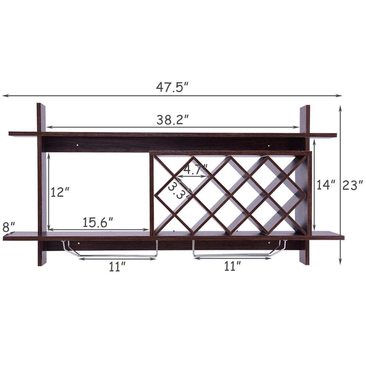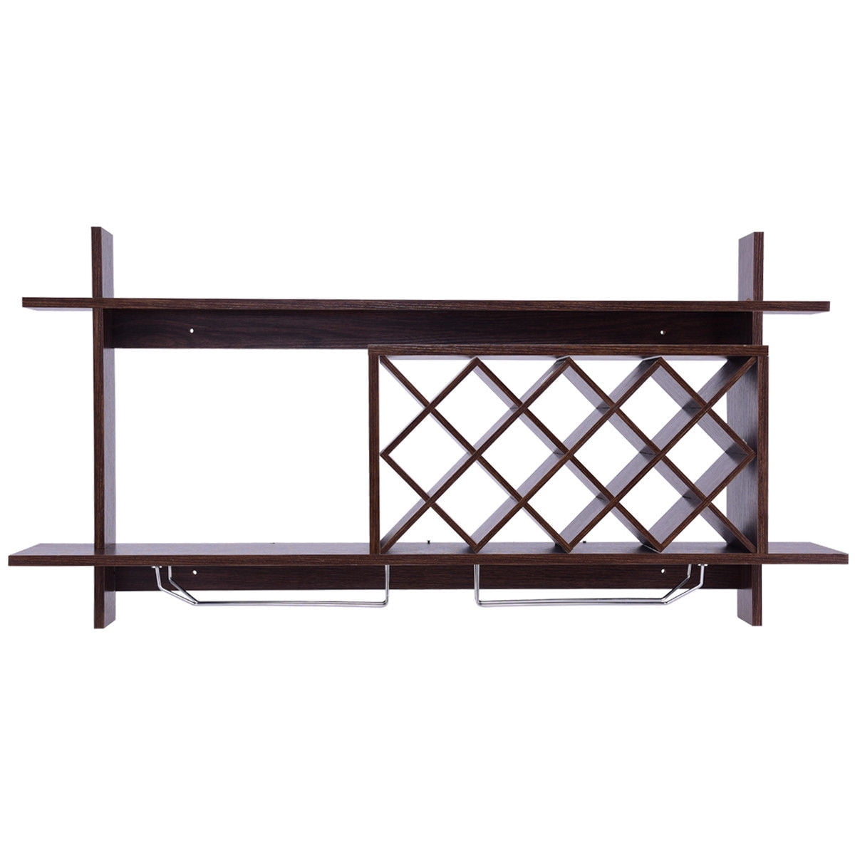 Gymax Wall Mount Wine Rack Organizer With Glass Holder & Storage Shelf Home Decor