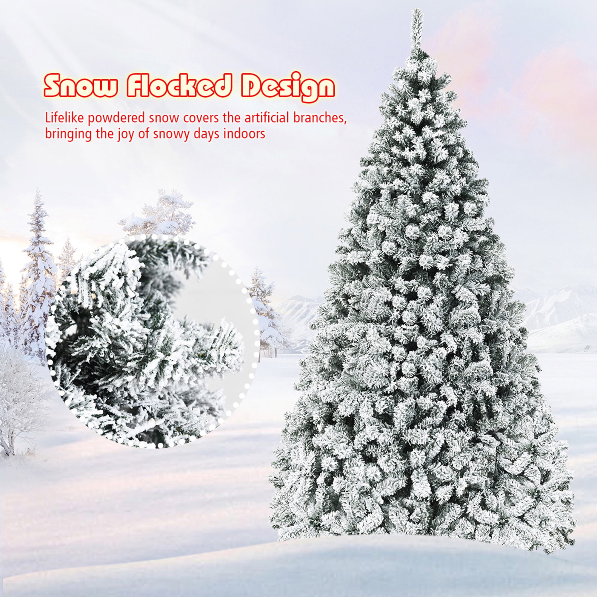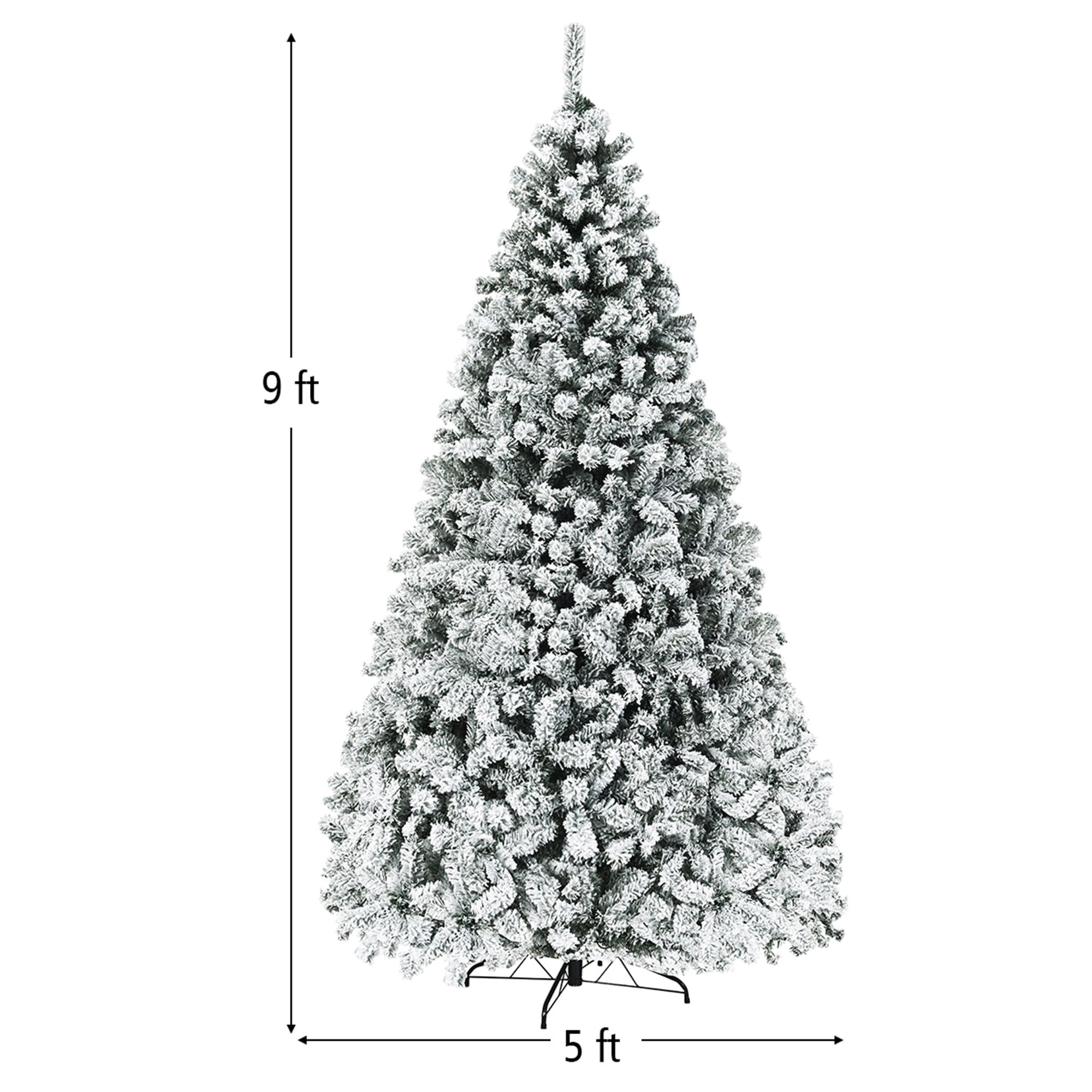 Gymax Decorate your home with our snow flocked Christmas tree to enjoy unique winter wonderland and embrace the warm festival feeling. This 9 ft artificial tree is designed with hinged structure to make the assemble easy. You can feel the coming of the festival quickly. Made of odourless PVC material, the tree is environmental and non-flammable for a long lifespan. Sturdy metal stand will offer good support to keep the tree upright. 550 warm white LED lights can save your time to set up electric lines. Moreover, with 1498 branch tips, it gives you a full and realistic look. The snow flocked appearance makes it an eye-catching addition anywhere.