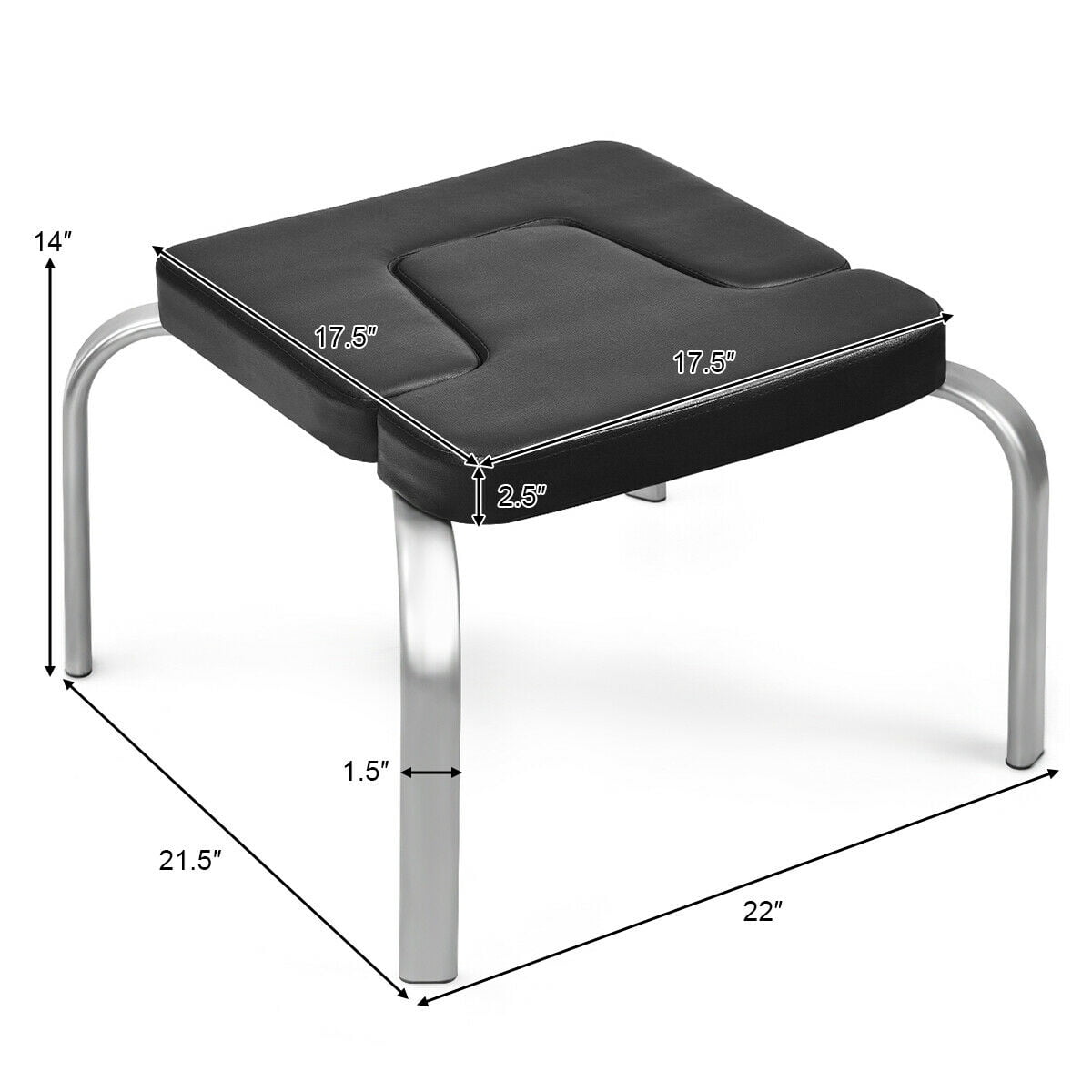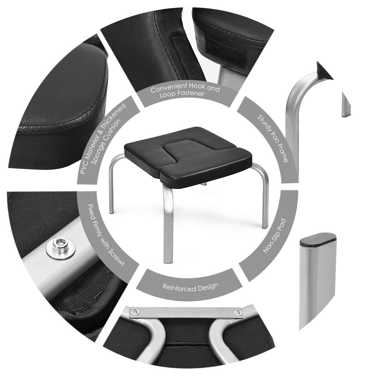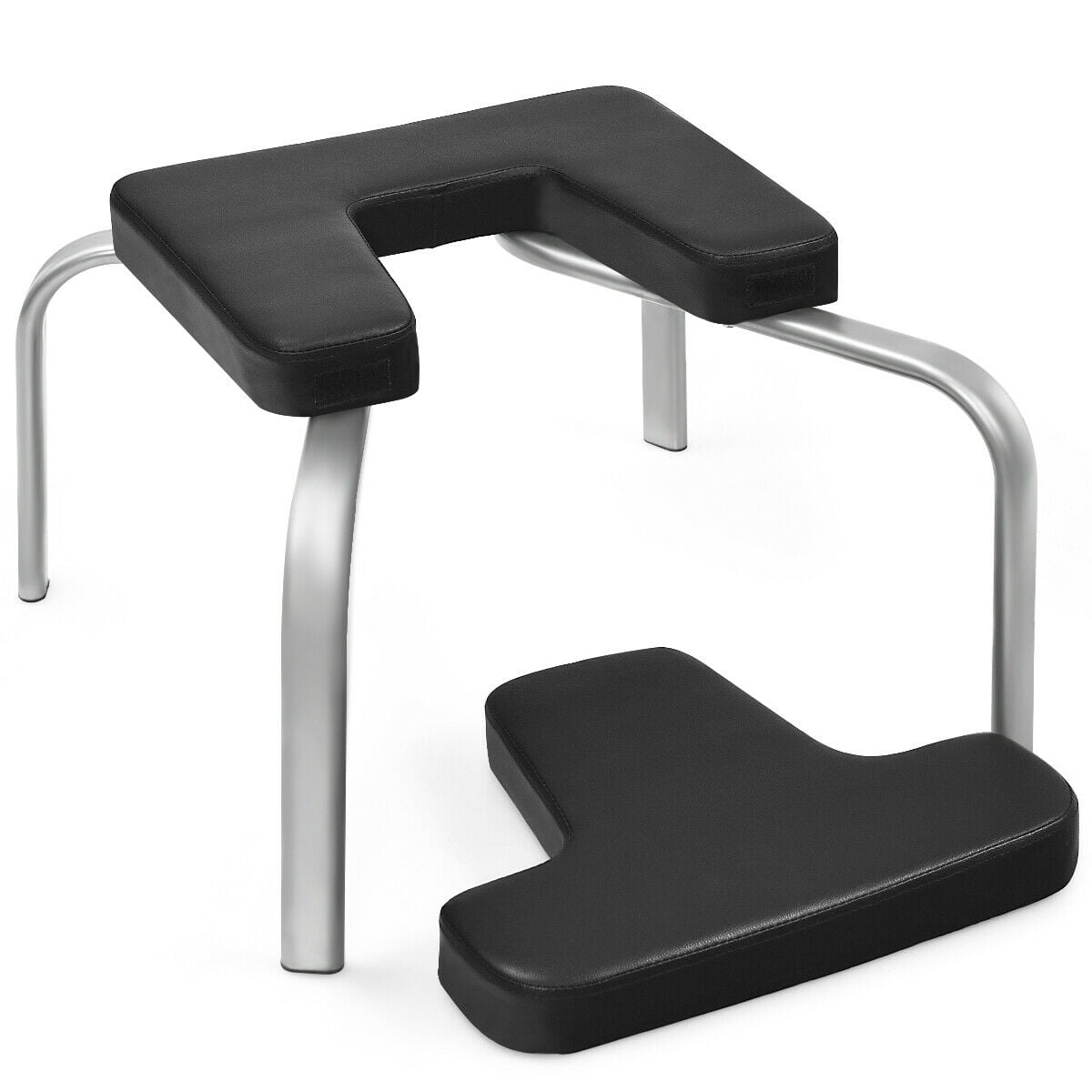 Description: If you are looking for a high-quality yoga headstand bench, then our product is your ideal choice. With our yoga headstand bench, you can easily perform handstands and yoga exercises in your bedroom, living room and office. It is ergonomically designed and does not put pressure on your neck and spine. It can help you promote blood circulation and improve blood supply to the head. And inverted for 5 minutes is equivalent to two hours of sleep time. Thick sponge pad and sturdy iron frame give you maximum comfort and safety. Our stand yoga chair is perfect for improving your health and quality of life. Features: Yoga inversion chair helps you relieve fatigue, promote blood circulation and metabolism With it you can easily complete various handstand postures to build body shape and lose weight It is ergonomically designed and does not pose a risk to your neck or spine Specification: Color: Black+Silver Material: Iron, PVC Leather, Plywood, Pearl Cotton Overall Dimensions: 22” X 21.5” X 14”(L X W X H) Net Weight: 9.5 lbs Weight Capacity: 440 lbs Package includes: 1X Yoga Headstand Bench 1X User’s Manual