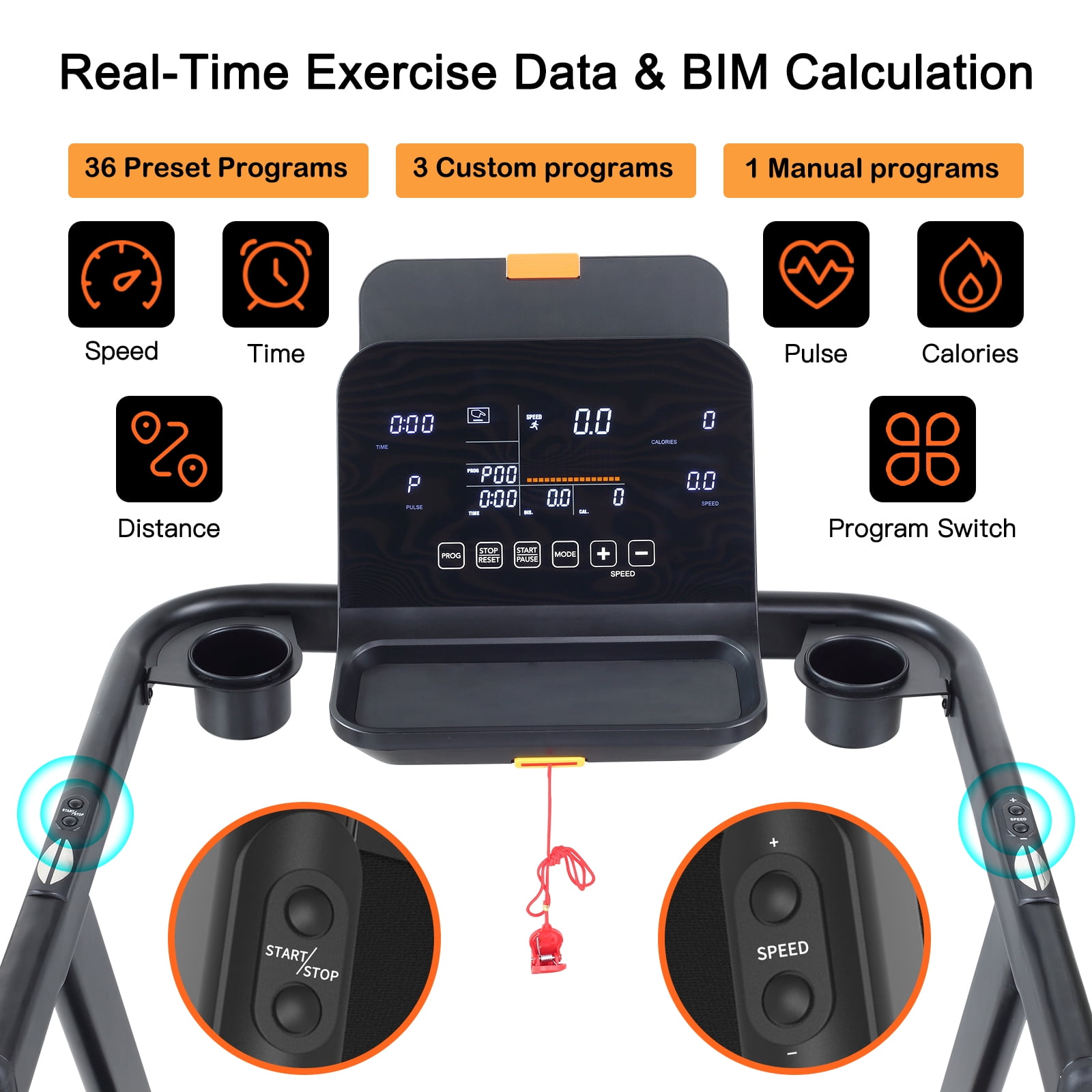GYMOST 2.5HP Folding Treadmill for Home with Manual incline, 0.6-10MPH, 40 Programs, Heart Rate Sensor and BIM Calculator, 300lb Capacity Walking Running Exercise Machine