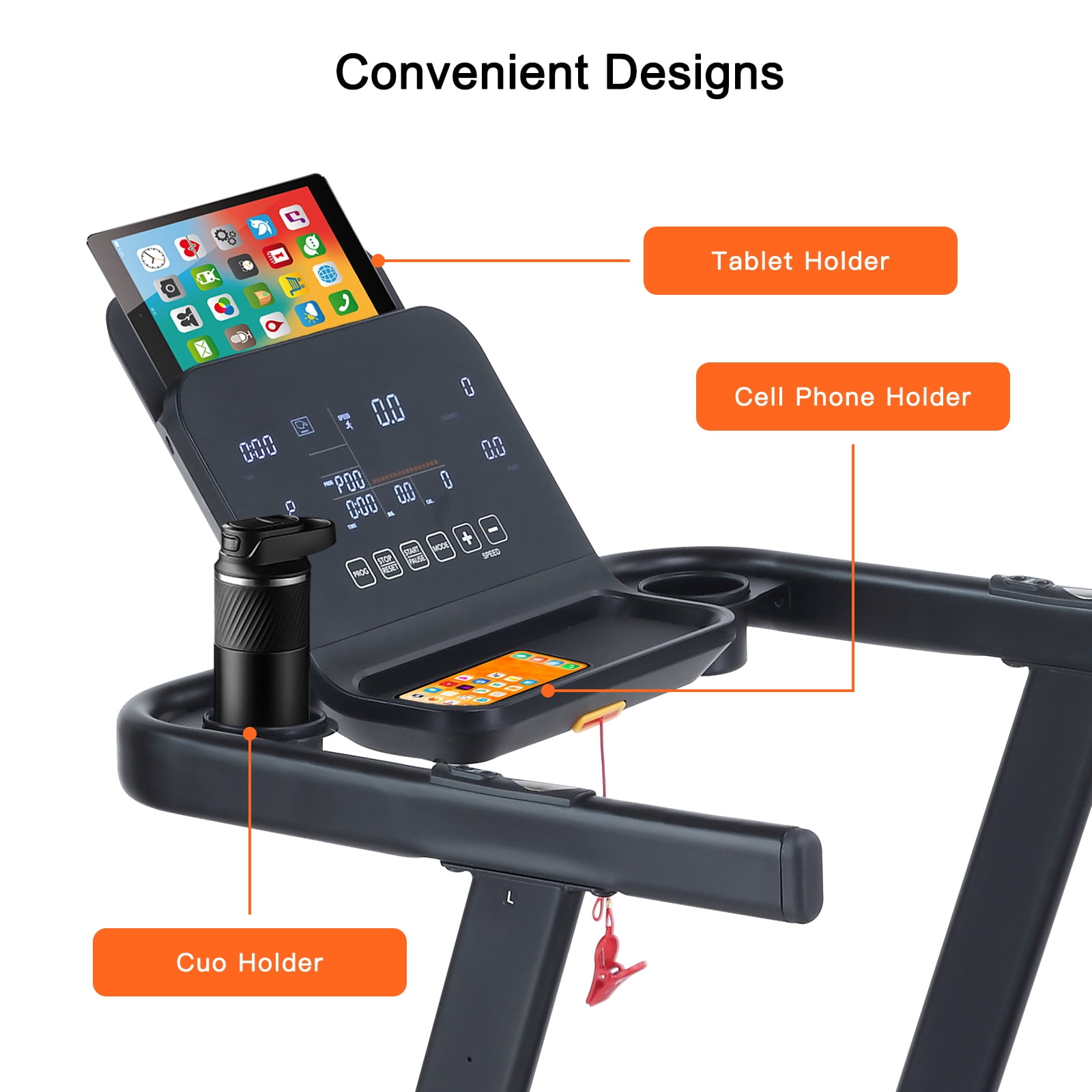 Powerful 2.5HP electric motor supports speeds from 0.6 to 10MPH, allowing you to walk, jog, and run at home or in the office. Large Running Belt & Shock-absorbing: The spacious 45.3″ x 16.5″ running deck features a 7-layer belt and 6 shock-absorbing cushions to minimize joint impact and provide a comfortable, low-noise experience. 300LBS Weight Capacity: Suitable for the whole family with a sturdy, heavy-duty frame that supports up to 300 lbs. Large LCD Display can track your time, speed, distance, calories, heart Rate, program and Modes. Convenient armrest controls let you adjust the full speed range, start/stop the treadmill, and monitor your heart rate. 3-Level Manual Incline & 40 Programs: Enjoy a customizable workout with the 3-level manual incline feature and 40 built-in training programs, including 36 presets, 3 custom programs, and 1 manual program. Security Protection: Stay safe with the included security key that stops the treadmill immediately if you need to step off. Easy Assemble & Easily move: The incline treadmill arrives 95% assembled, you only need to tighten a few screws to install it. Storage with convenient transportation wheels makes it easy to move and store. Excellent Service: We attentively listen to all customers, providing round-the-clock after-sales support and complimentary replacement parts for one year.